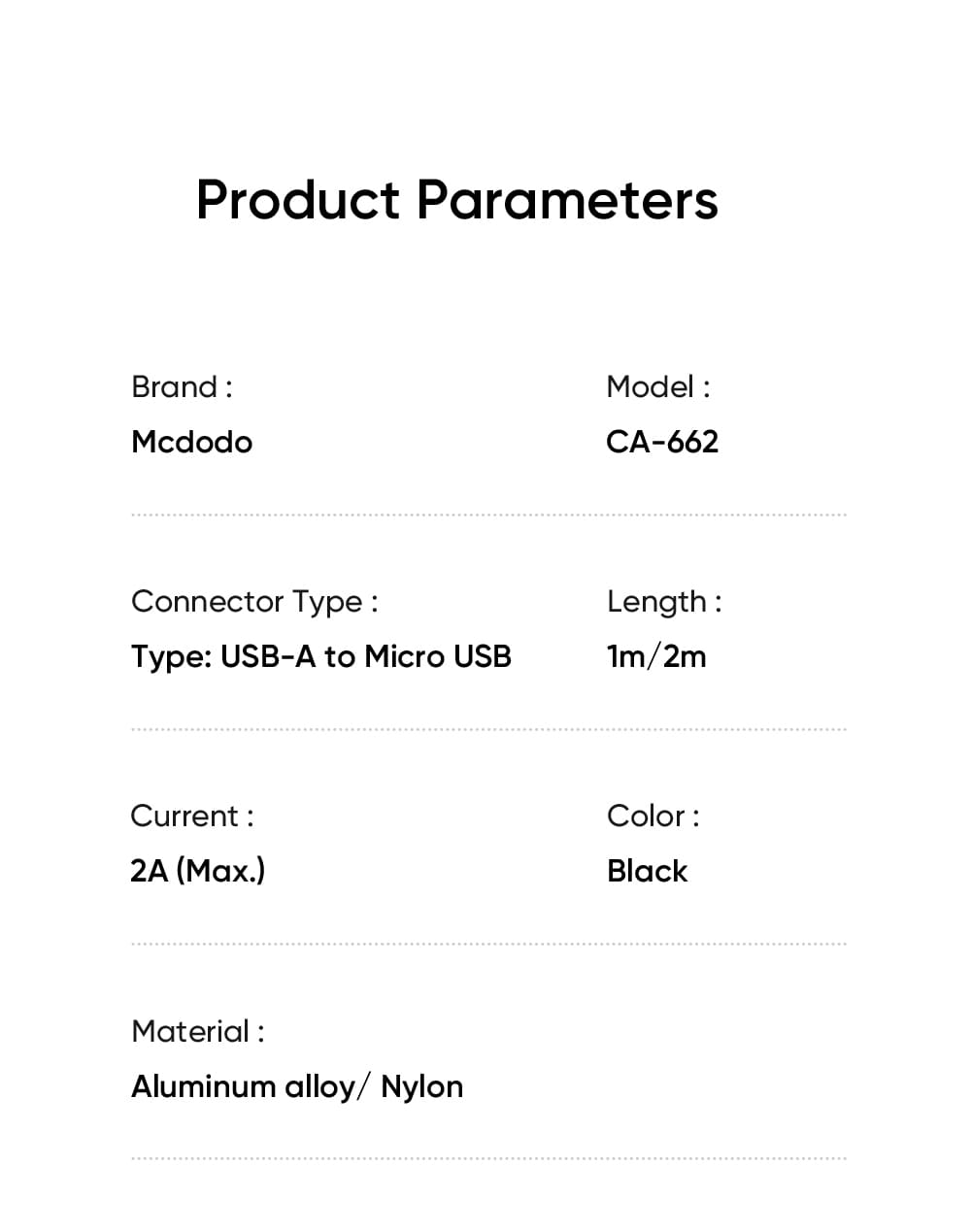 | Tên | Cáp Sạc Mcdodo Cab Luma 2A USB to Micro | Có Đèn LED Báo Sạc |
