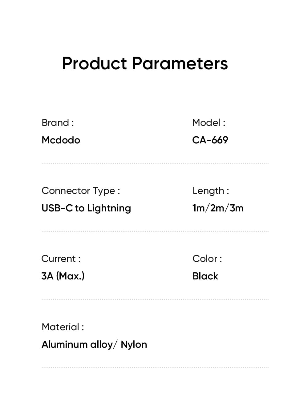 | Tên | Cáp Sạc Mcdodo Cab Luma 36W Type-C to Ln | Có Đèn LED Báo Sạc, Chuẩn PD |