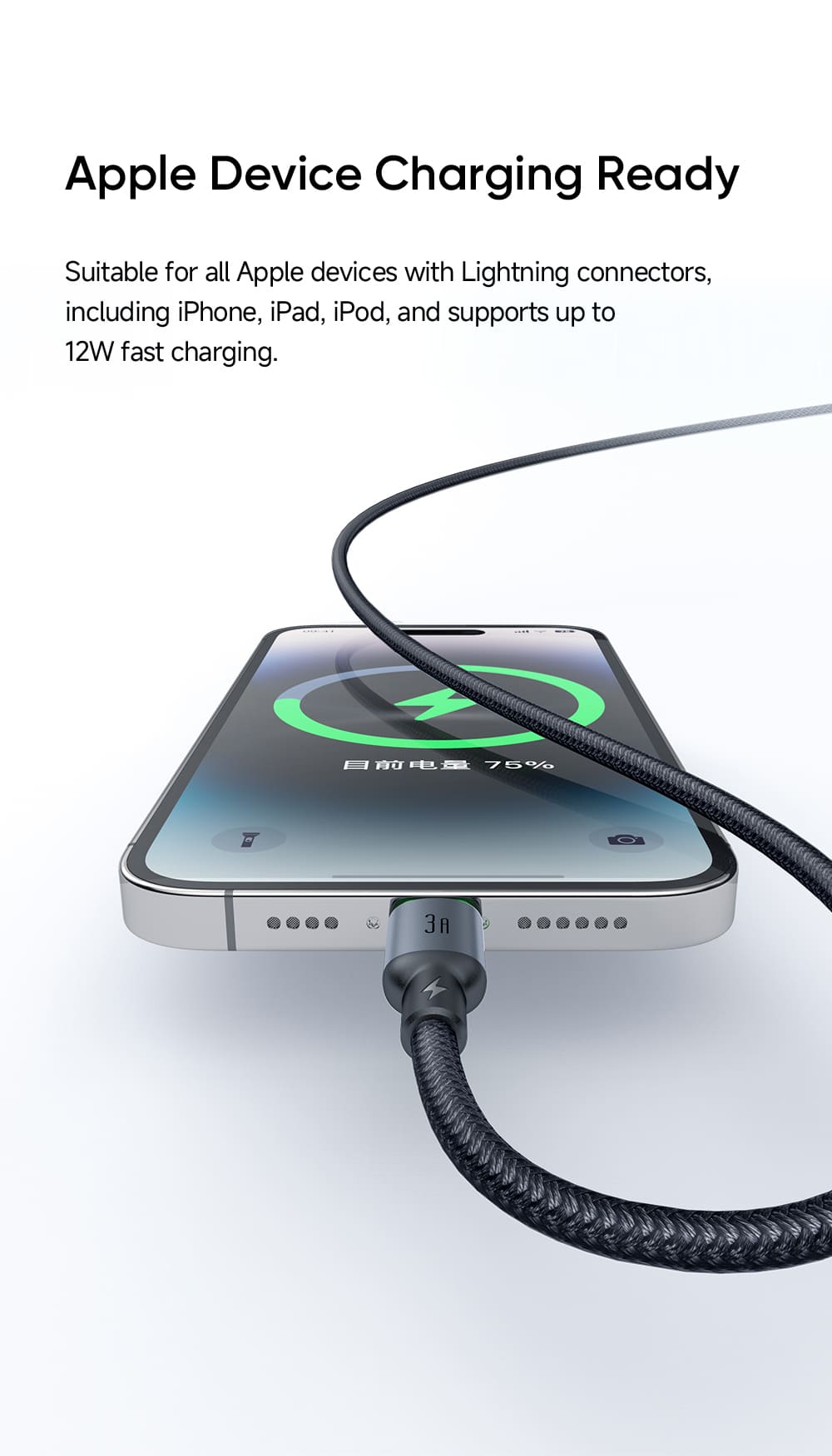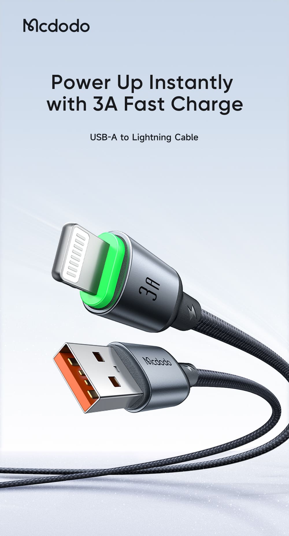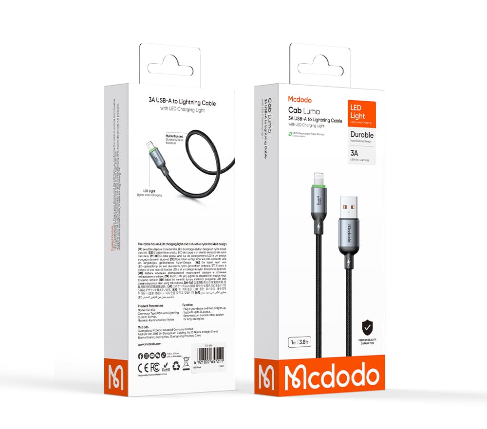 Bạn đang tìm một sợi cáp sạc 3A cho iP vừa bền bỉ vừa có đèn báo? 📱 Cáp Mcdodo Cab Luma chính là lựa chọn hoàn hảo! Với thiết kế đèn LED phát sáng khi sạc, bạn có thể dễ dàng cắm sạc trong đêm. Cáp bọc dù siêu bền, sạc nhanh 3A an toàn cho thiết bị (sạc 60% trong 30 phút).