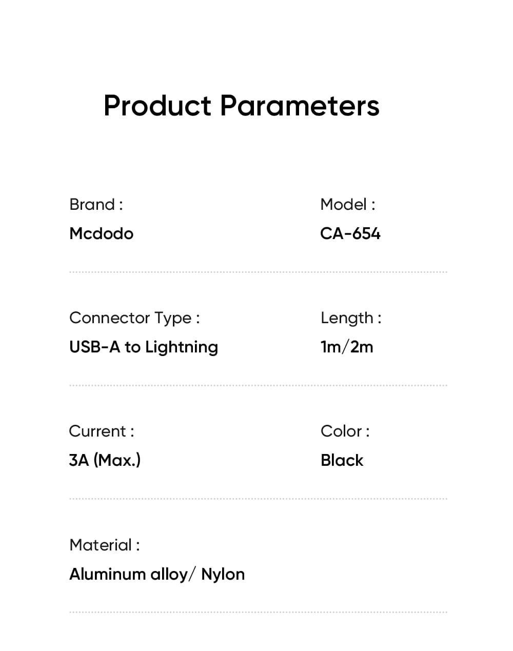 | Tên | Cáp Sạc Mcdodo Cab Luma 3A USB to Ln | Có Đèn LED Báo Sạc Xanh |