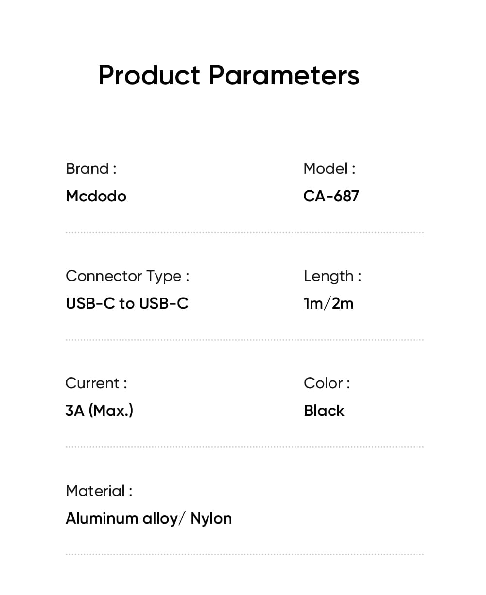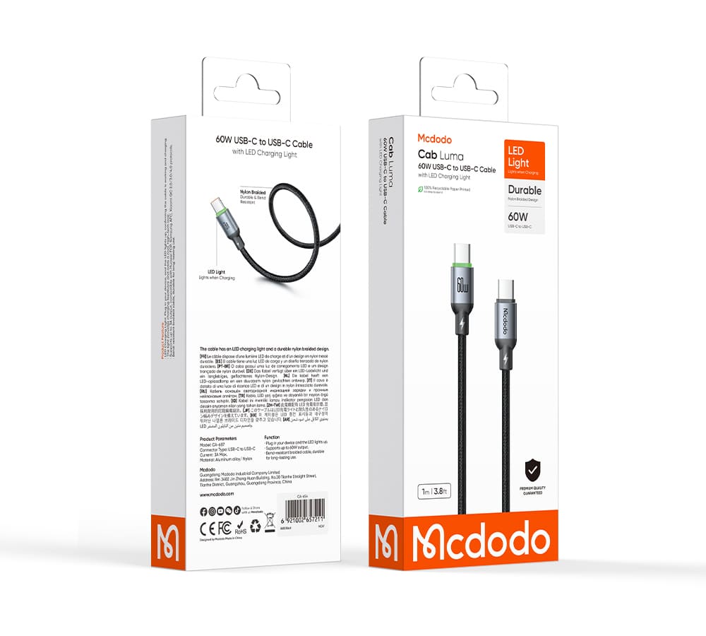 | Tên | Cáp Sạc Mcdodo Cab Luma 60W Type-C to Type-C | Có Đèn LED Báo Sạc, Chuẩn PD |