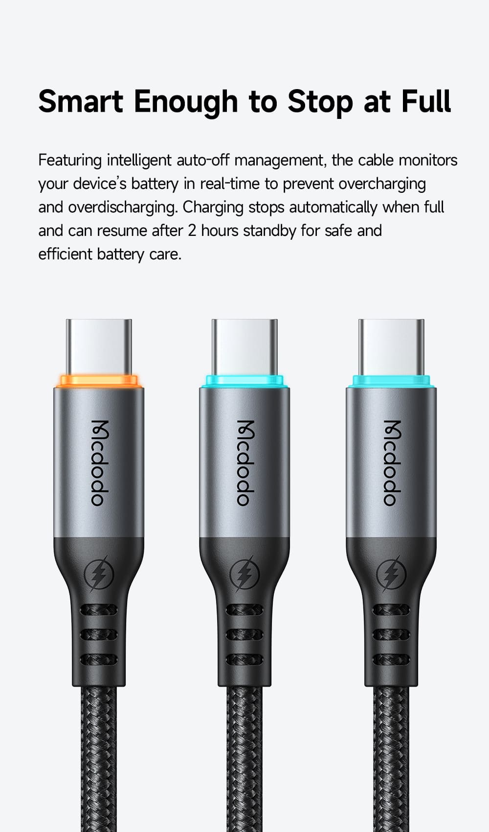 Bạn lo lắng sạc laptop, điện thoại qua đêm bị chai pin? 💻 Cáp Mcdodo Cab Smart 100W là giải pháp an toàn tuyệt đối! Tích hợp chip tự ngắt thông minh (Auto Power Off), cáp tự ngắt điện khi sạc đầy. Hỗ trợ sạc nhanh PD 100W, có đèn LED báo trạng thái và dây dù siêu bền. 📱