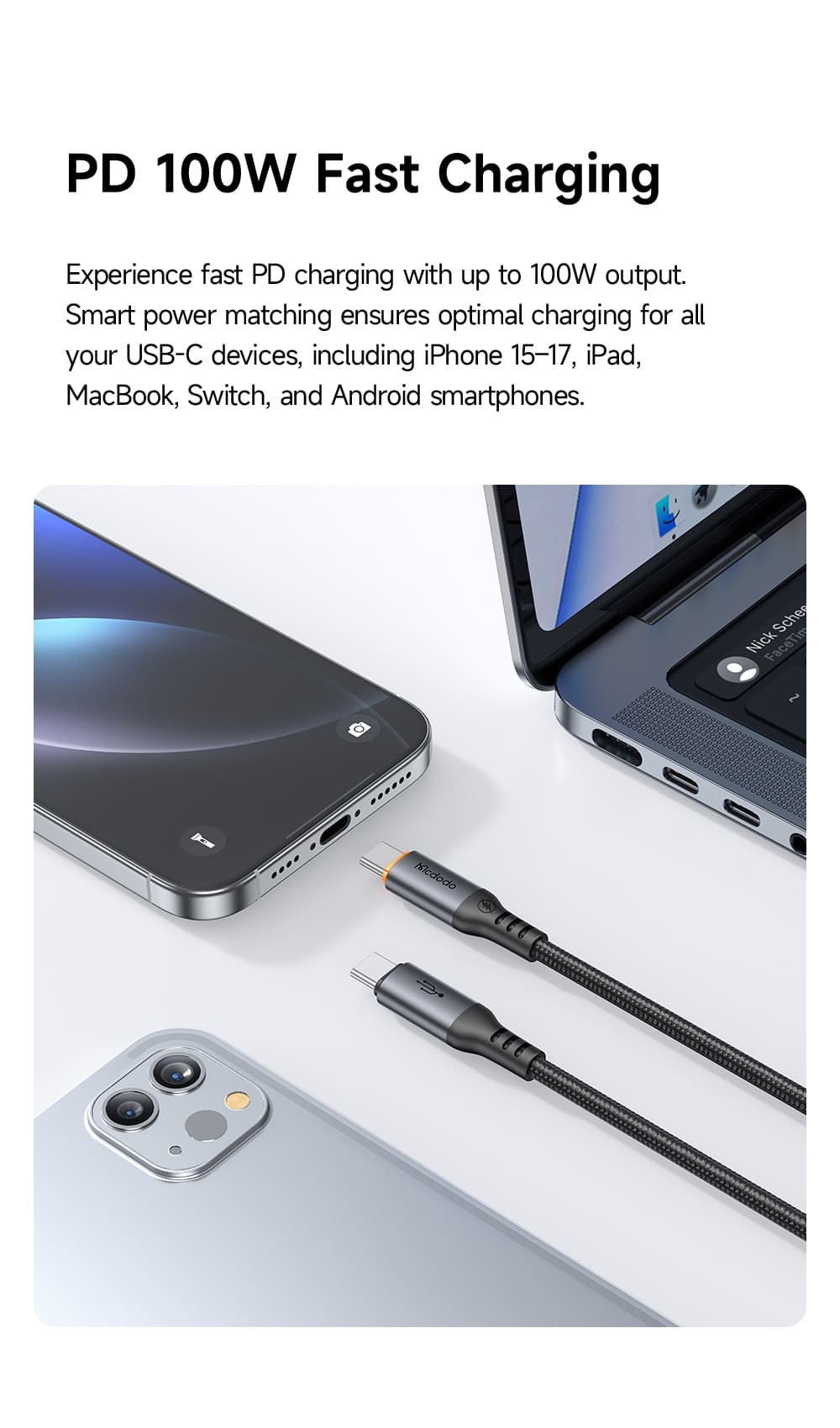 | Tên | Cáp Sạc Mcdodo Cab Smart 100W Type-C to Type-C | Tự Ngắt Thông Minh, Sạc Laptop, Điện Thoại |
