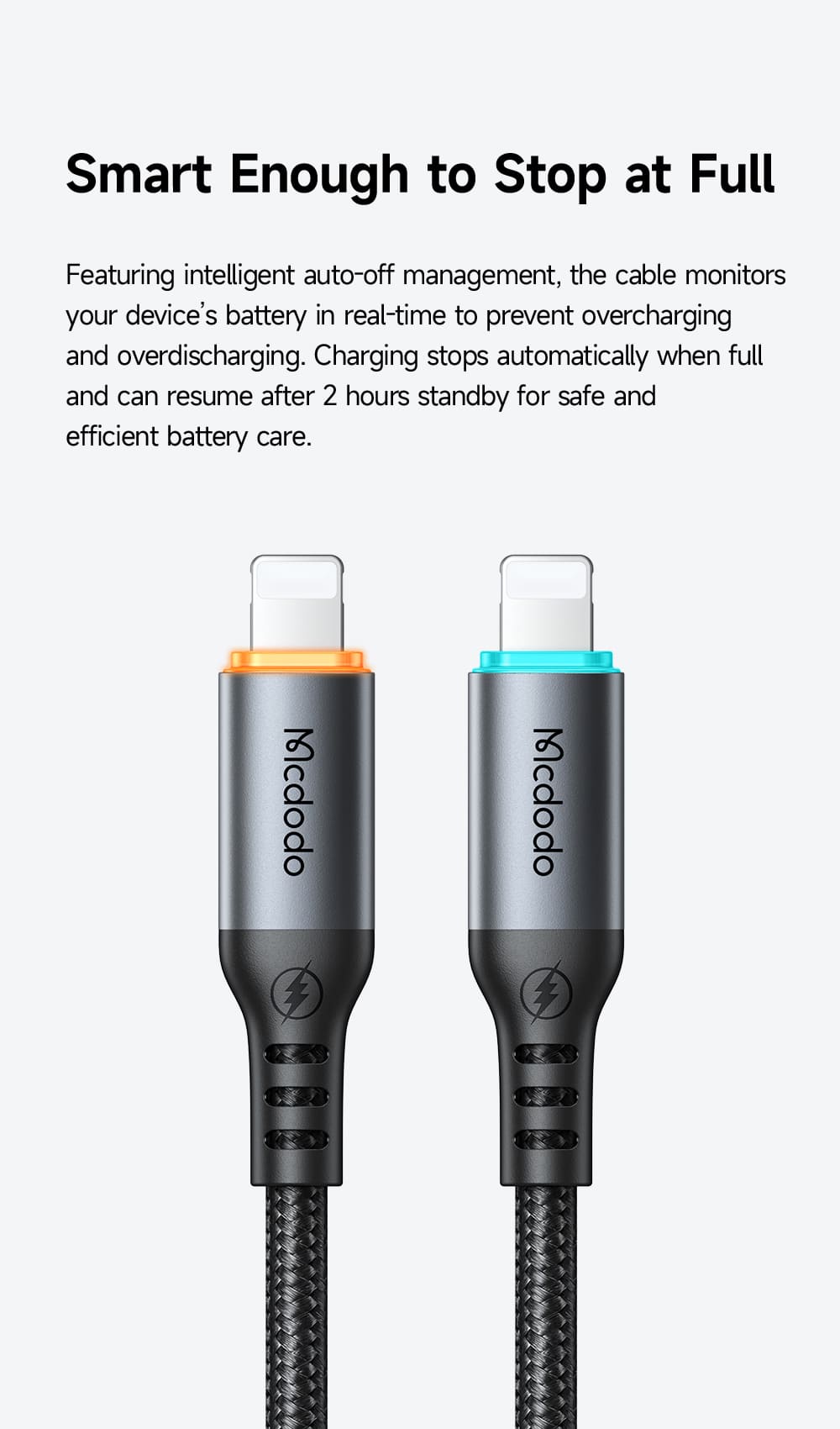 ✨ CÁP SẠC MCDODO CAB SMART 12W TỰ NGẮT (USB TO LN) ✨ TỰ NGẮT KHI ĐẦY - AN TOÀN SẠC QUA ĐÊM!