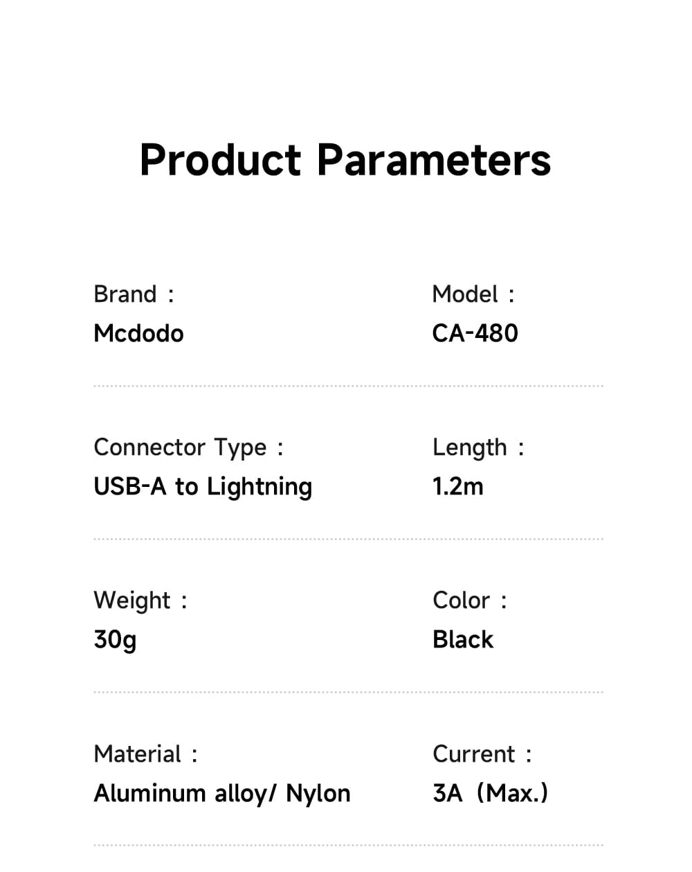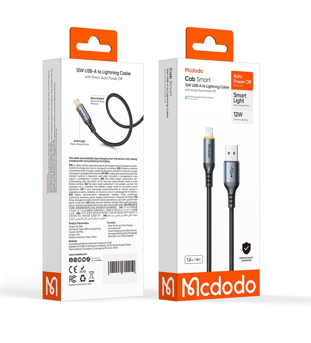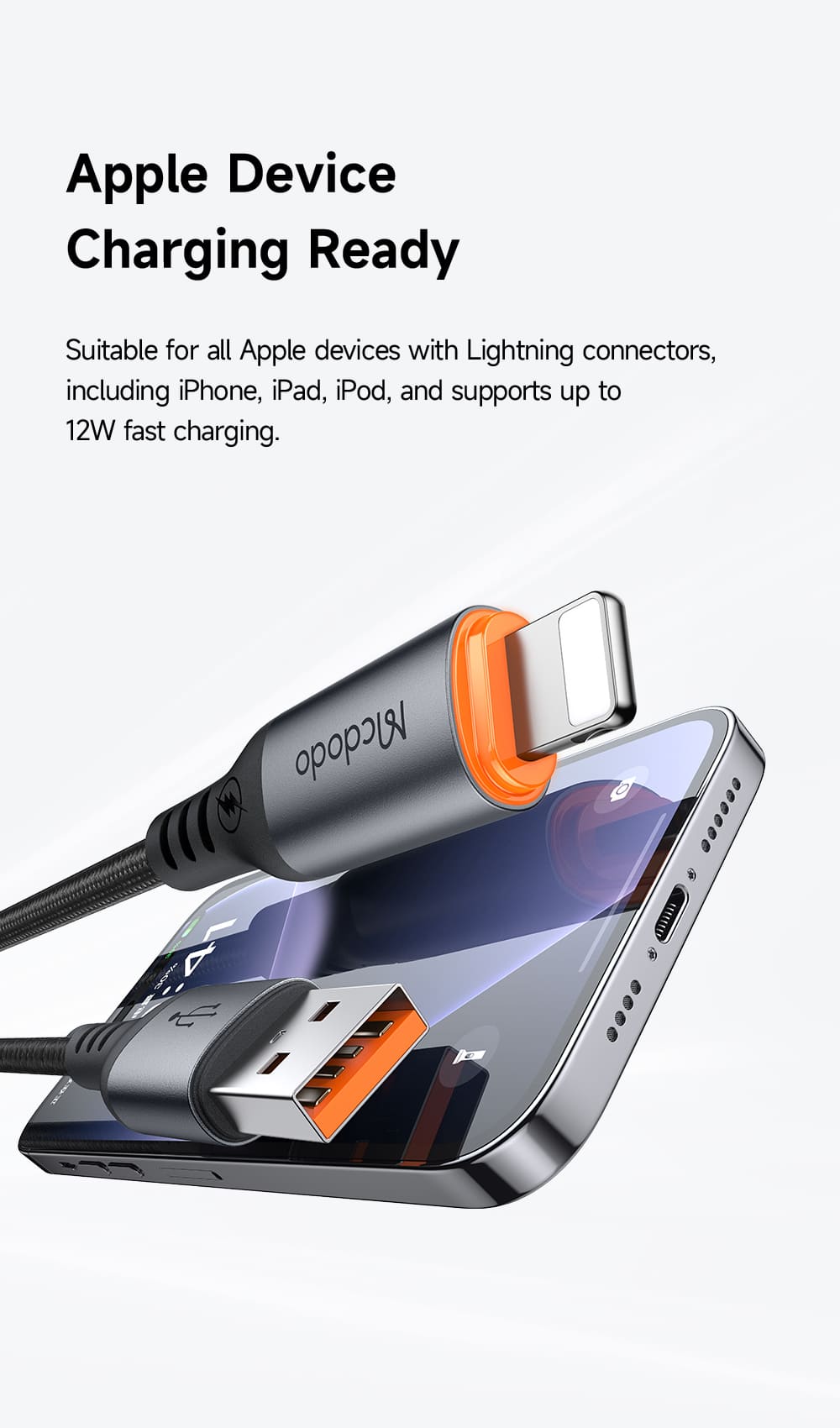 | Tên | Cáp Sạc Mcdodo Cab Smart 12W USB to Ln | Tự Ngắt Thông Minh, Có Đèn Báo Sạc |