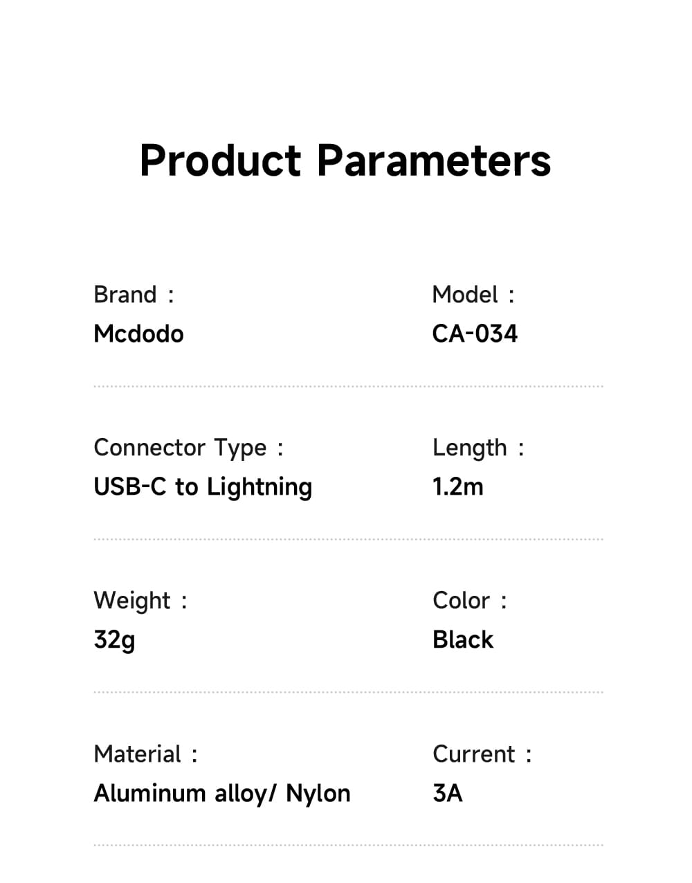 | Tên | Cáp Sạc Mcdodo Cab Vision 36W Type-C to Ln | Có Đèn LED, Chuẩn PD Cho iP |