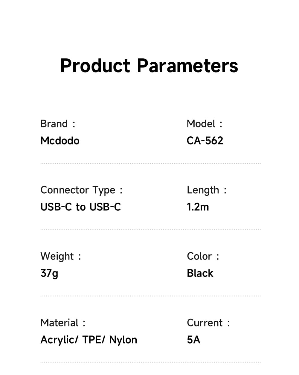| Tên | Cáp Sạc Mcdodo LightSync 100W Type-C to Type-C | Đèn LED Hiệu Ứng Thở, Siêu Bền |