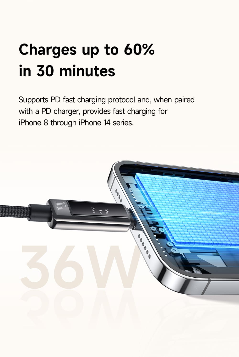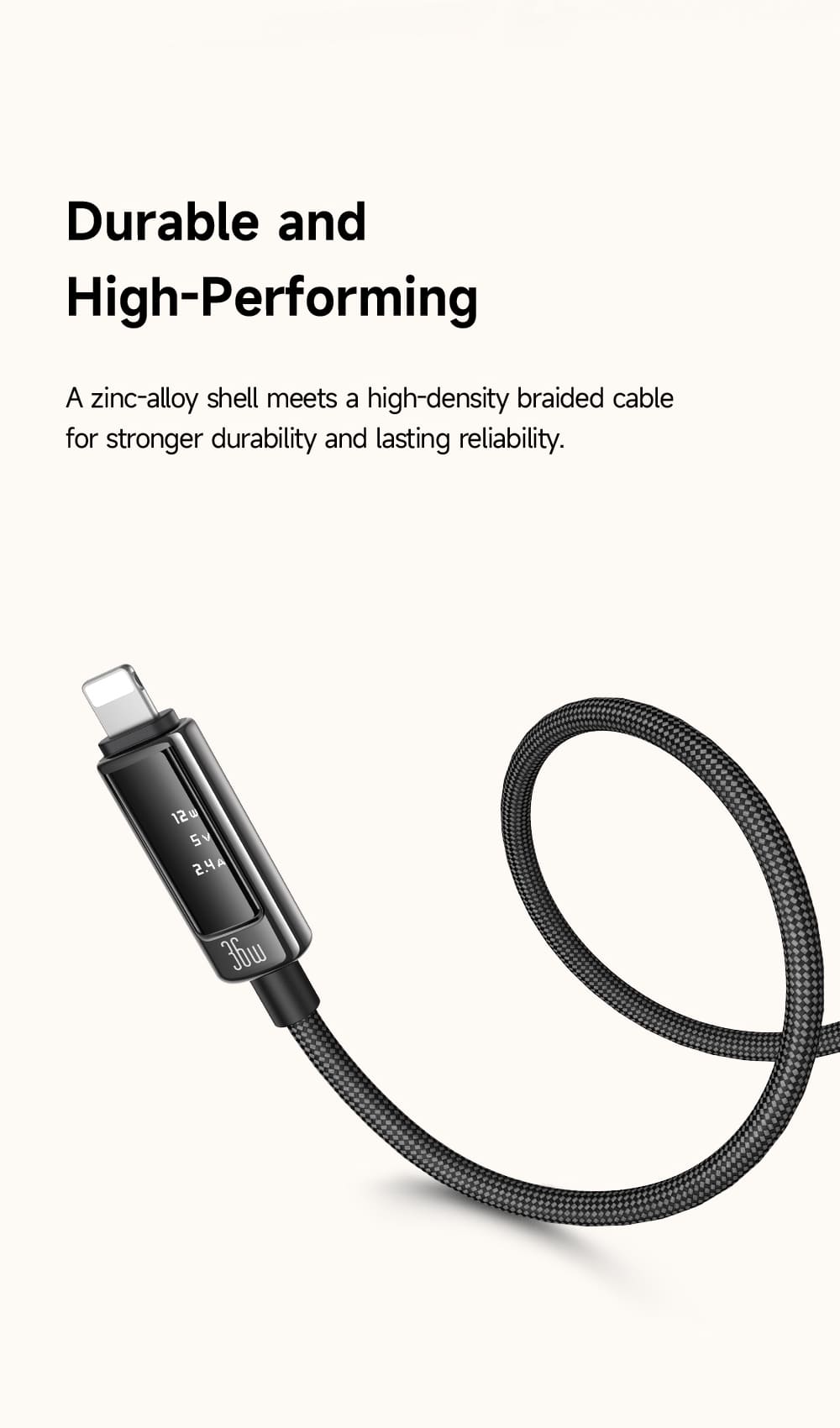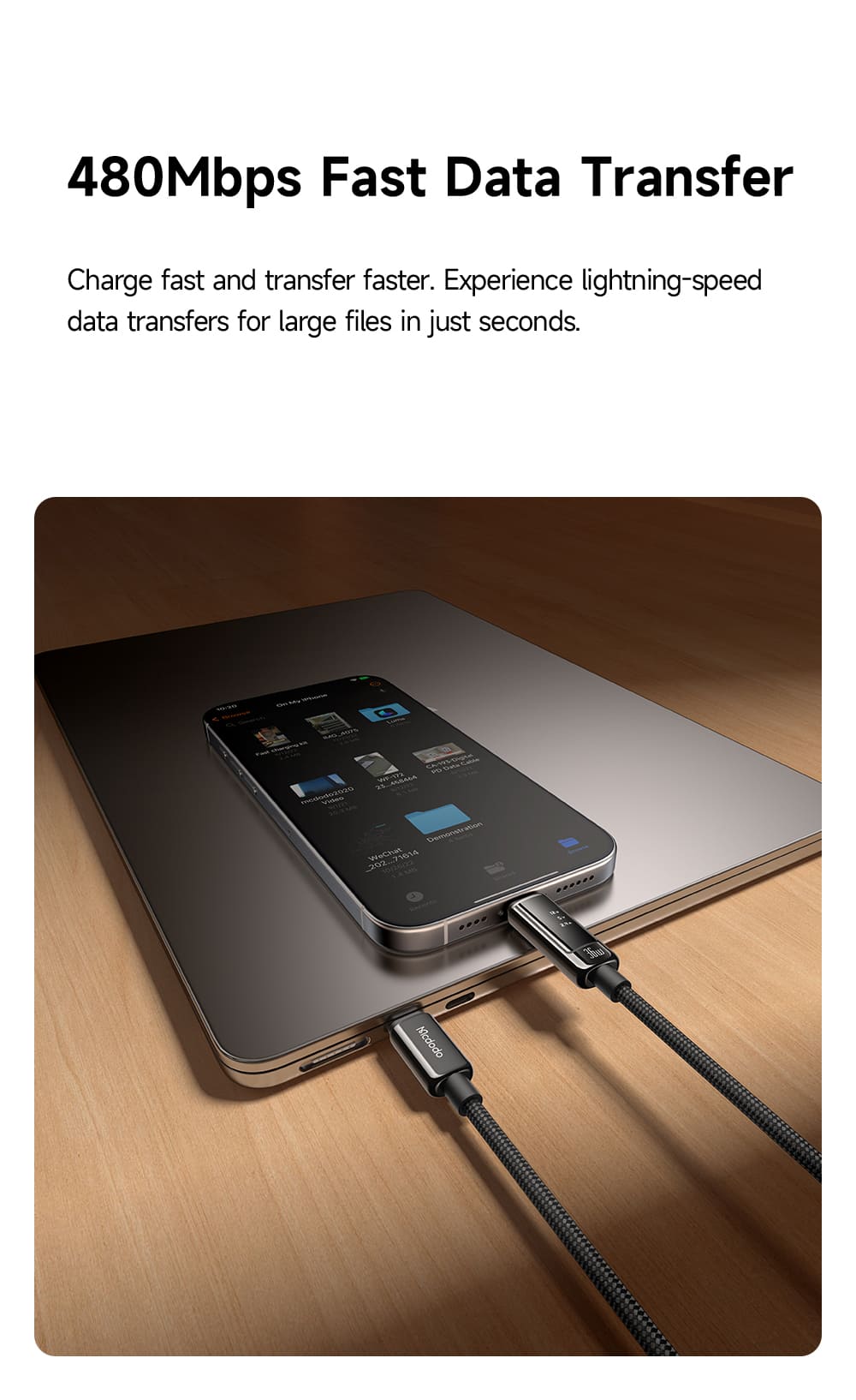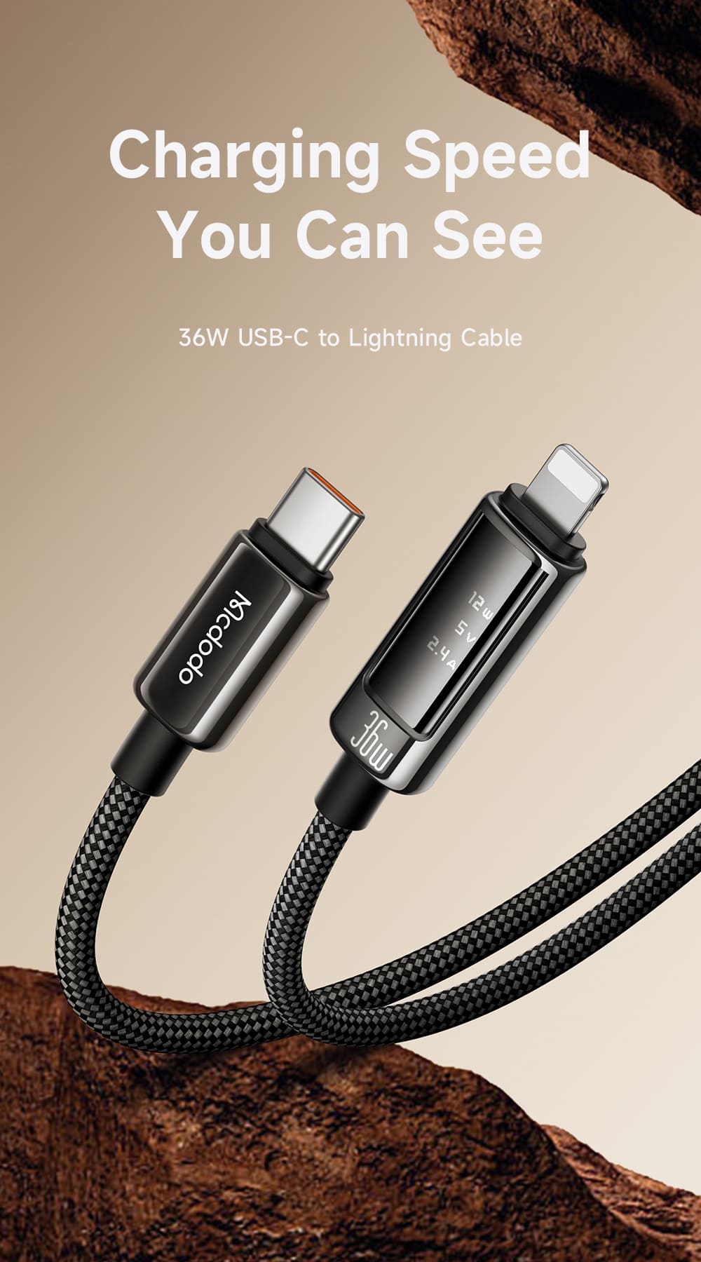 Cáp Sạc Mcdodo Vision Màn Hình OLED | Type-C to Ln 36W, Hợp Kim Kẽm, Dây Dù Bền Bỉ