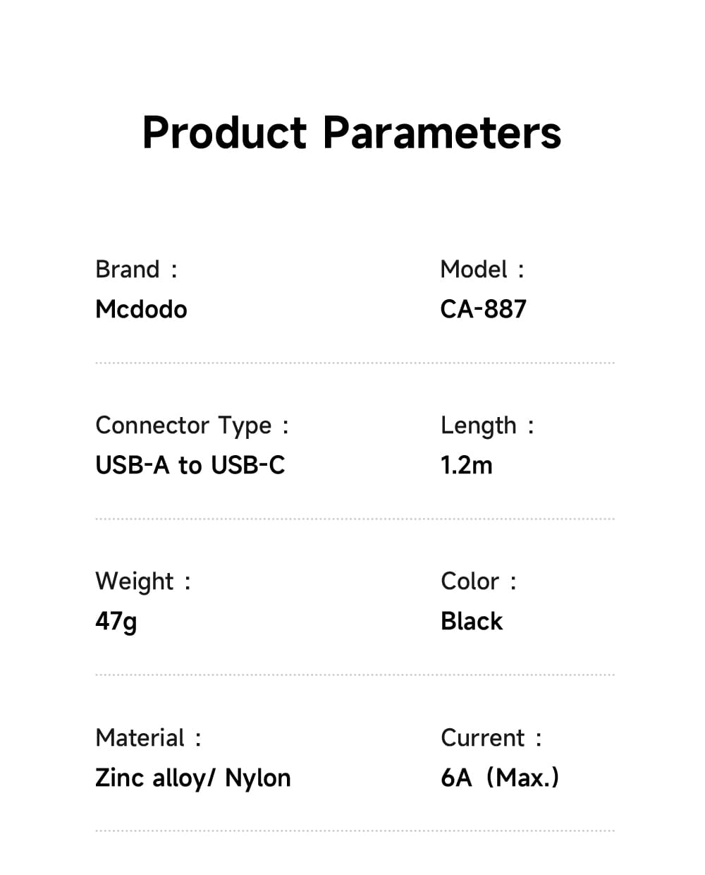 Cáp Sạc Mcdodo Vision Màn Hình OLED | USB to Type-C 6A, Đầu Hợp Kim Kẽm Sang Trọng