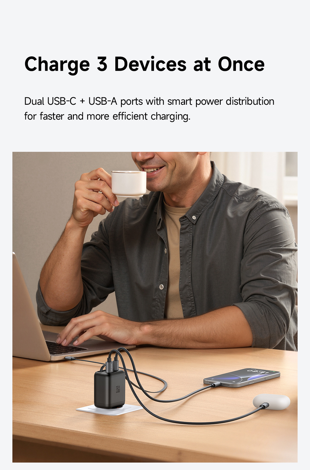 💡 Công Nghệ GaN Nhỏ Gọn, Mát Mẻ: Công nghệ GaN thế hệ mới giúp củ sạc có kích thước nhỏ gọn hơn, sạc hiệu quả hơn và ít tỏa nhiệt hơn đáng kể so với các củ sạc thông thường cùng công suất.