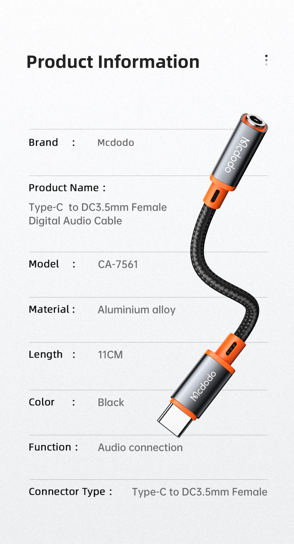 Tên | Đầu Chuyển Audio Mcdodo Type-C to 3.5mm | Tích Hợp Chip DAC, Âm Thanh Lossless, Full Chức Năng |