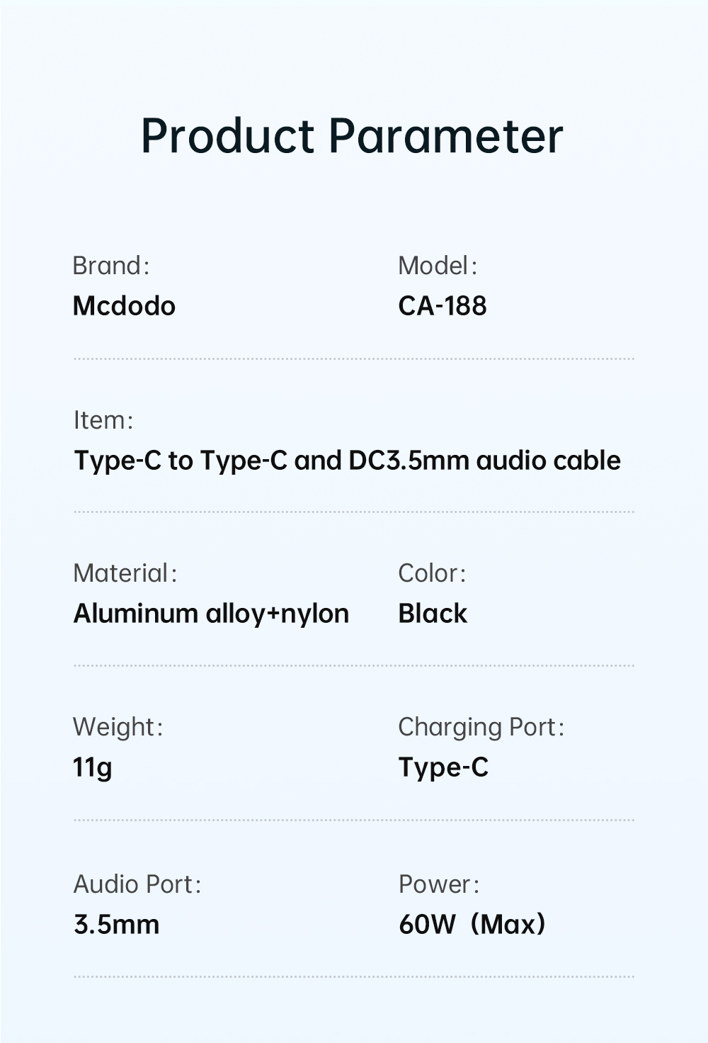 | Tên | Đầu Chuyển Đổi Mcdodo Type-C to Type-C and DC3.5mm cable (60W PD) |