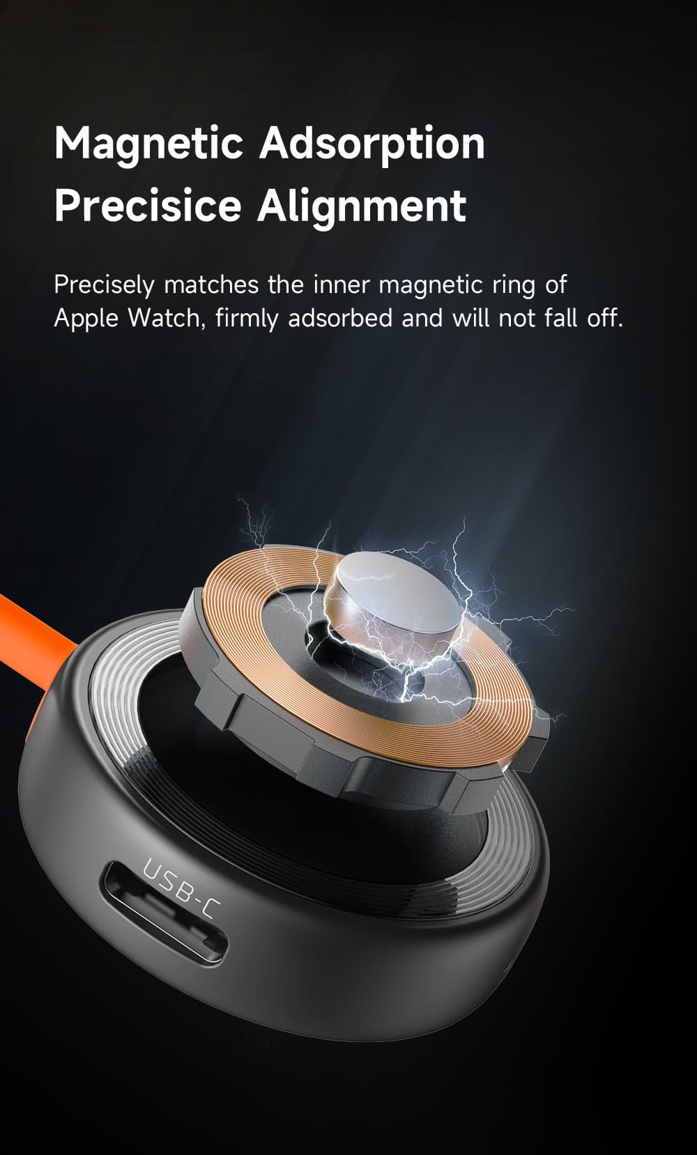 🧲 Hít Nam Châm Chắc Chắn: Chỉ cần đặt đồng hồ lên mặt sạc, lực hút nam châm sẽ tự động giữ chặt và canh chỉnh vị trí sạc một cách chính xác, đảm bảo kết nối luôn ổn định.