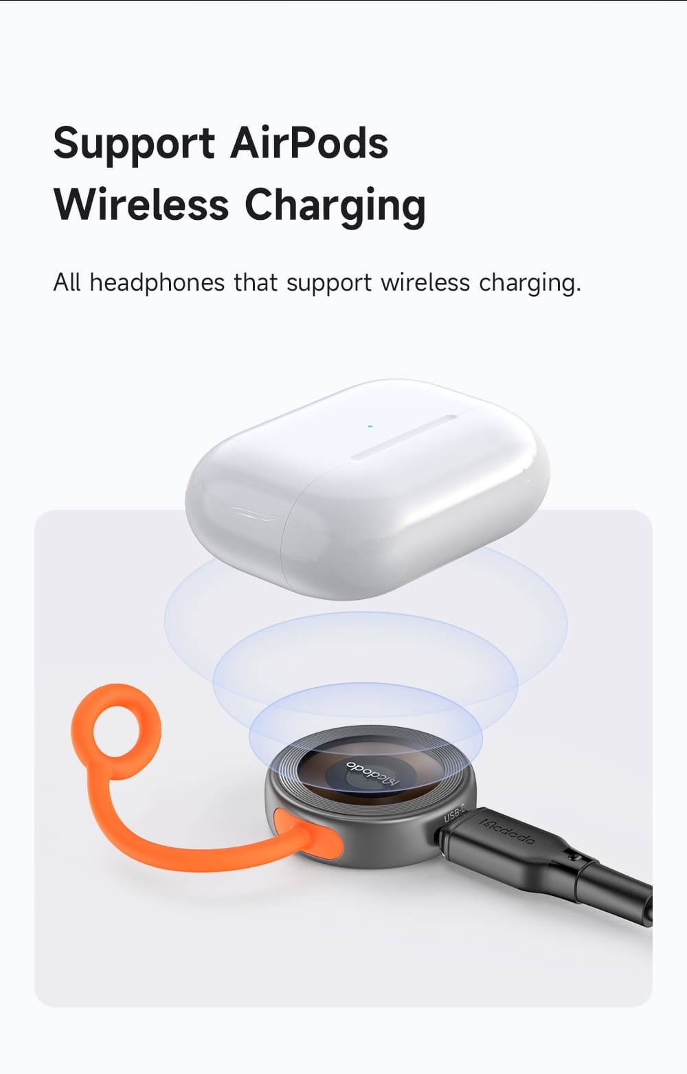 🔄 Thiết Kế 2 Cổng Sạc Vào Tiện Lợi: Điểm đột phá nhất! Đế sạc được trang bị cả hai cổng sạc vào phổ biến nhất: Type-C và Ln. Bạn có thể dùng bất kỳ sợi cáp nào mình có sẵn để cấp nguồn cho đế sạc, cực kỳ linh hoạt và tiện lợi, đặc biệt khi đi du lịch.