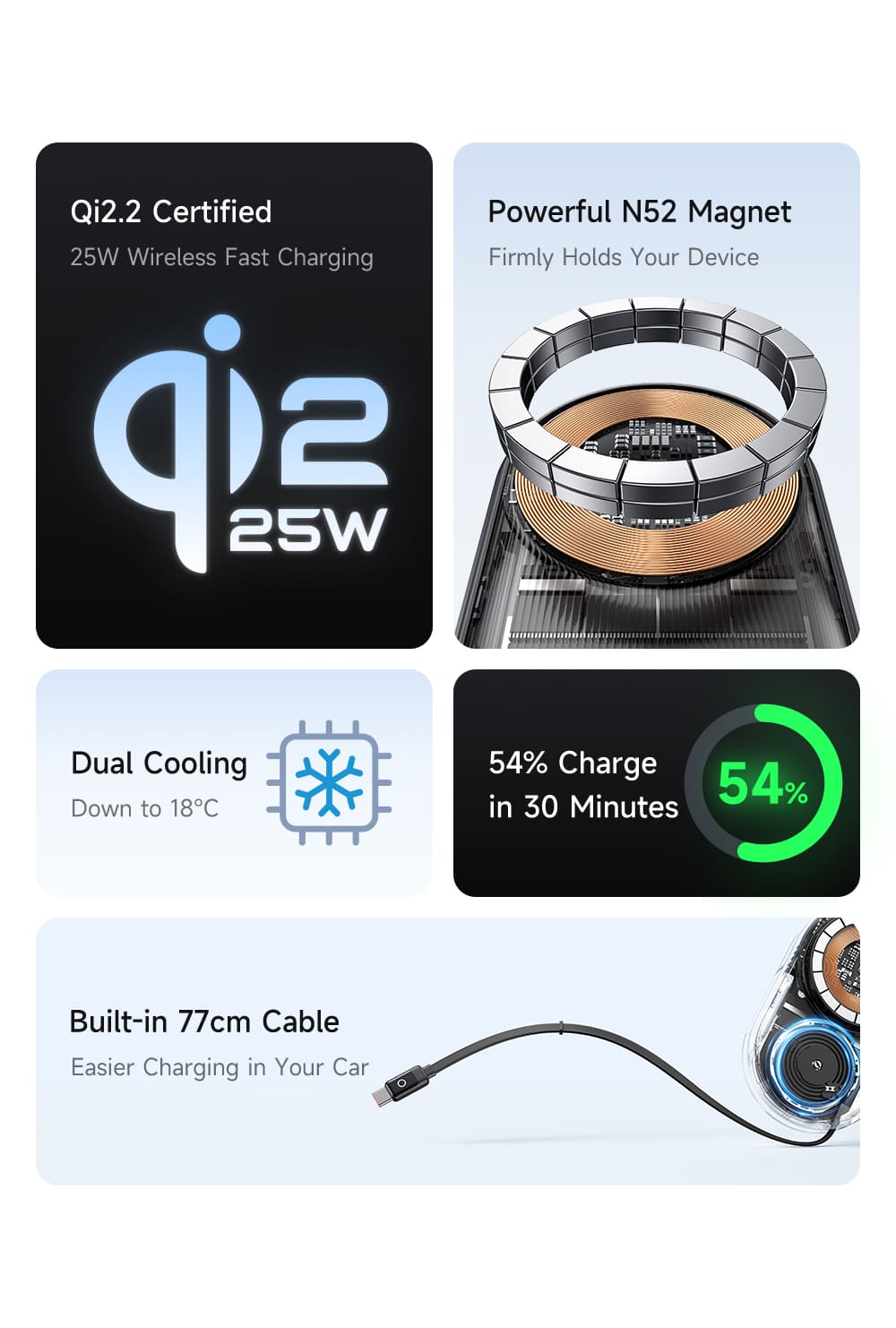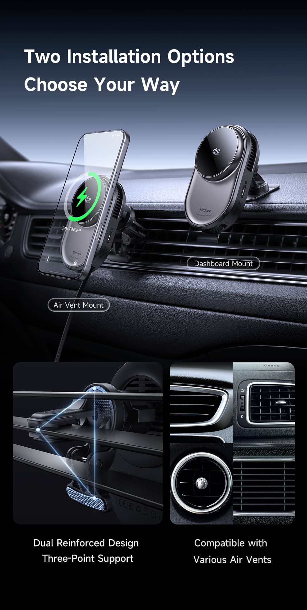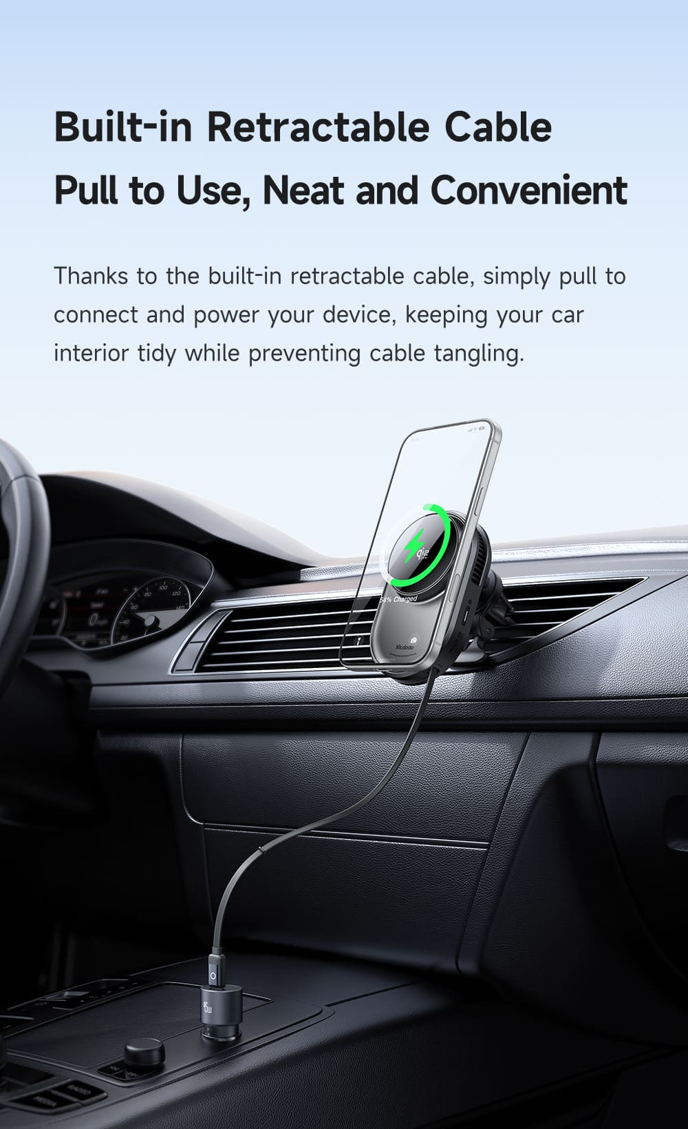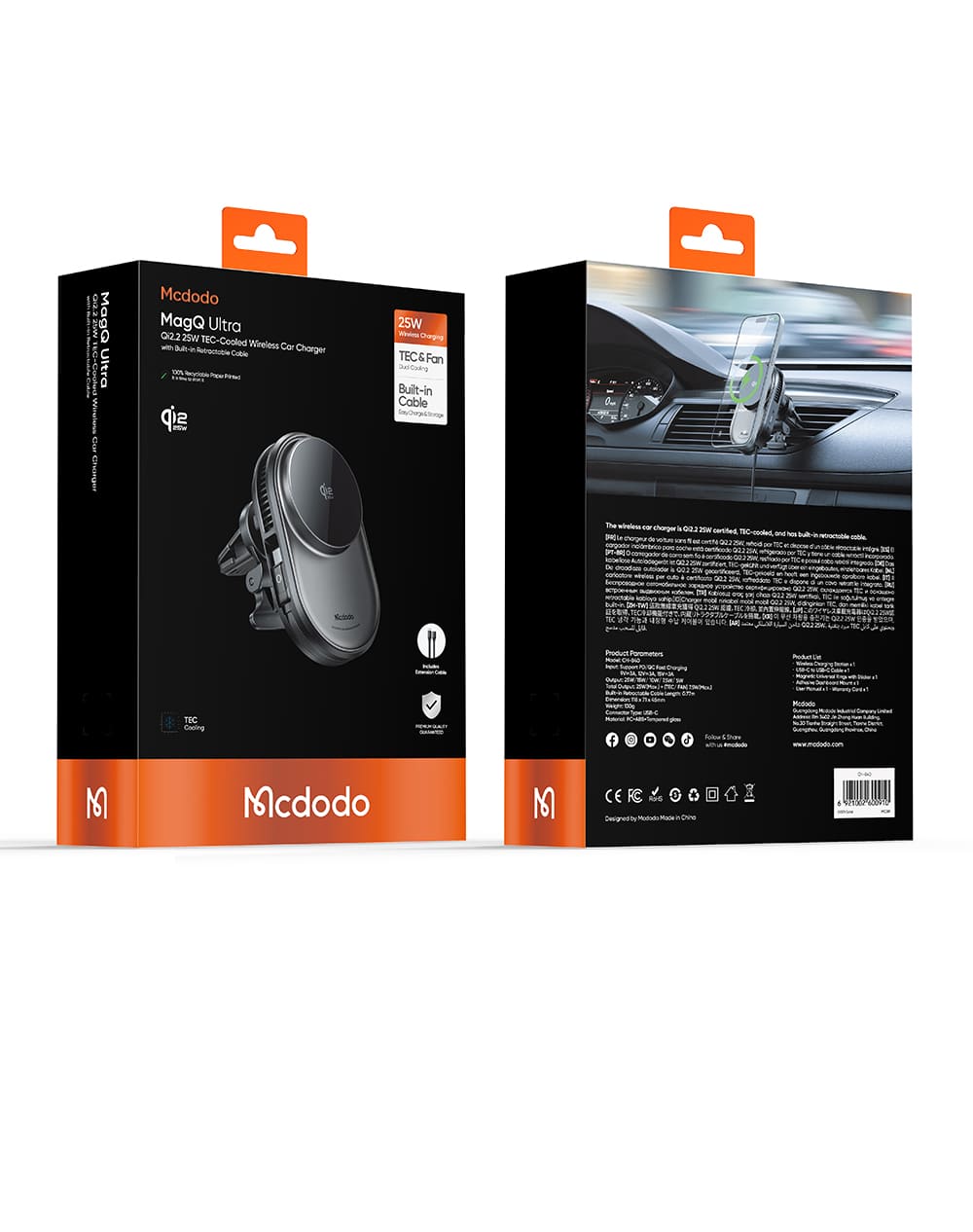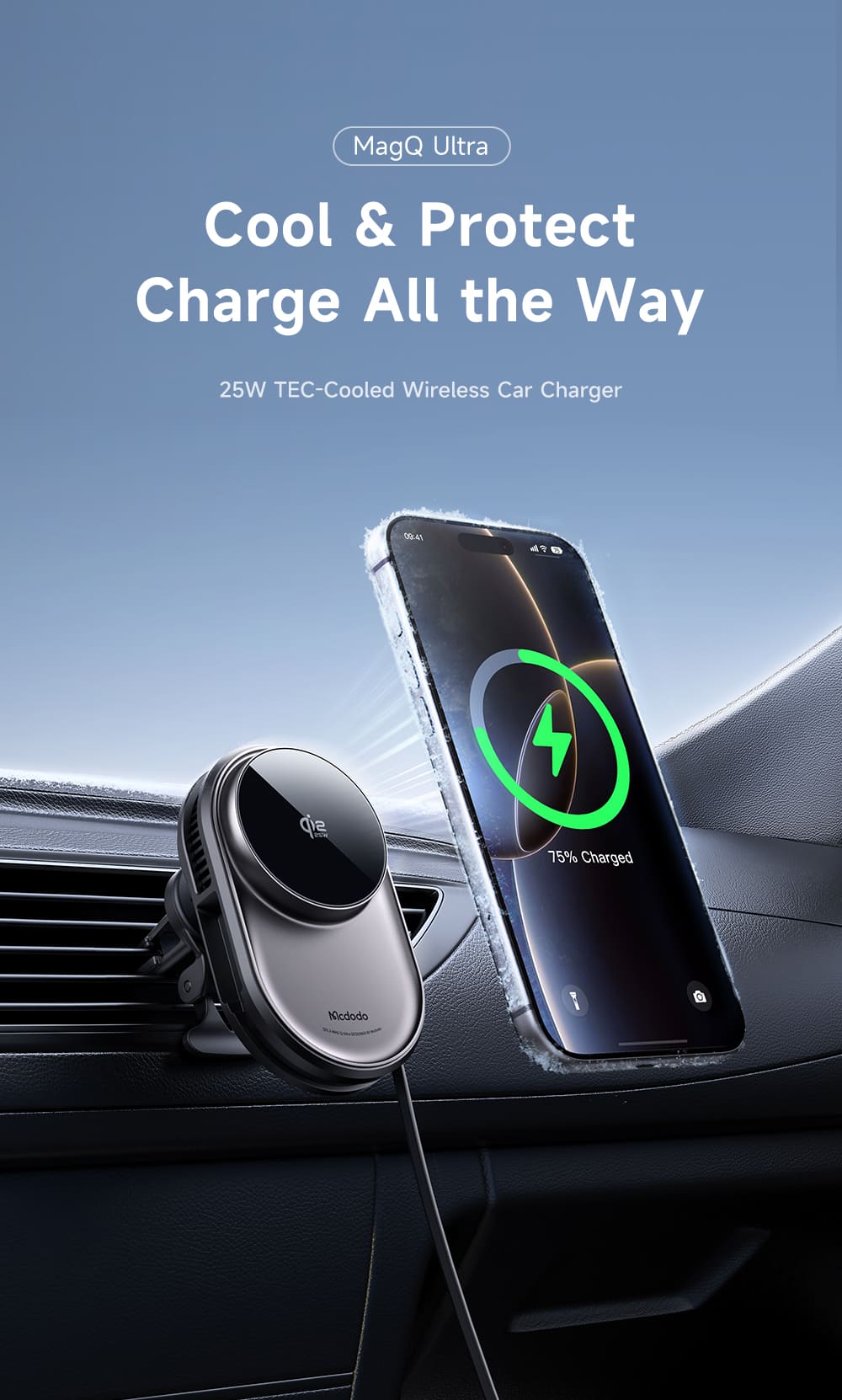 Trải nghiệm sạc không dây 25W trên ô tô ở một đẳng cấp mới! 🚗 Mcdodo MagQ Ultra là giá đỡ sạc không dây đầu tiên tích hợp công nghệ tản nhiệt sò lạnh TEC và dây Type-C rút gọn. Với chuẩn Qi2.2 mới nhất và nam châm N52 siêu hít, điện thoại của bạn sẽ được sạc nhanh (54% trong 30p), mát lạnh và luôn cố định chắc chắn.