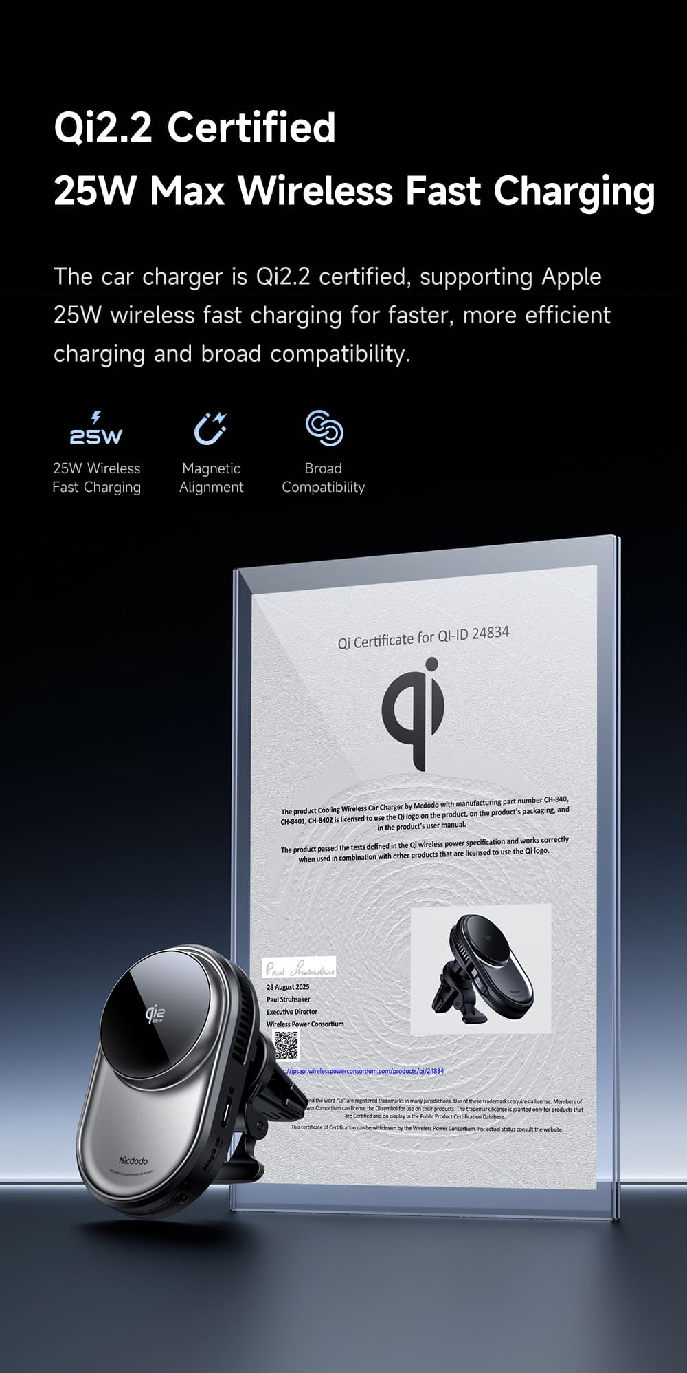 | Tên | Giá Đỡ Sạc Không Dây Mcdodo MagQ Ultra 25W | Tản Nhiệt TEC, Hít Từ Tính Qi2.2 |