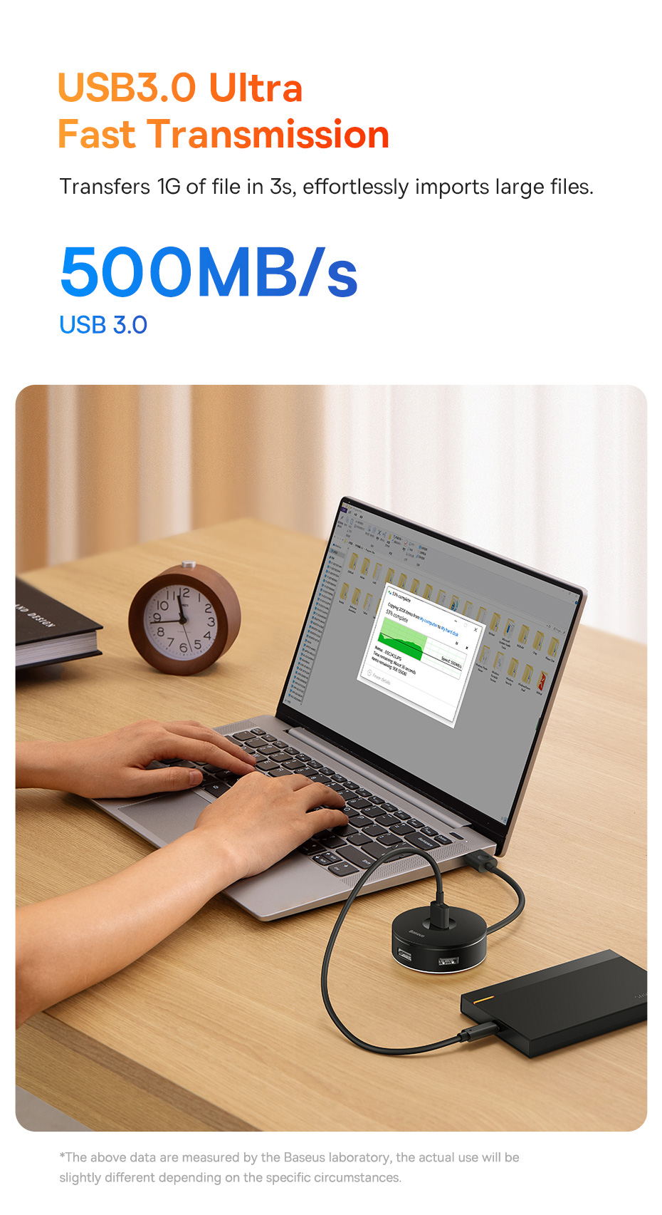 🚀 TRUYỀN DỮ LIỆU SIÊU TỐC 500MB/s: Được trang bị 1 cổng USB 3.0 tốc độ cao, Baseus Round Box cho phép bạn truyền tải file 1GB chỉ trong 3 giây. Sao chép phim, ảnh, tài liệu lớn chưa bao giờ nhanh và dễ dàng đến thế!