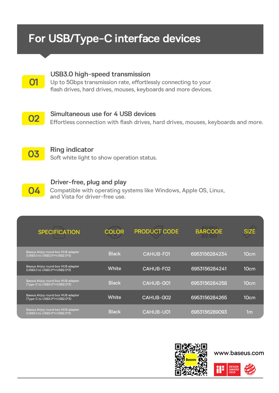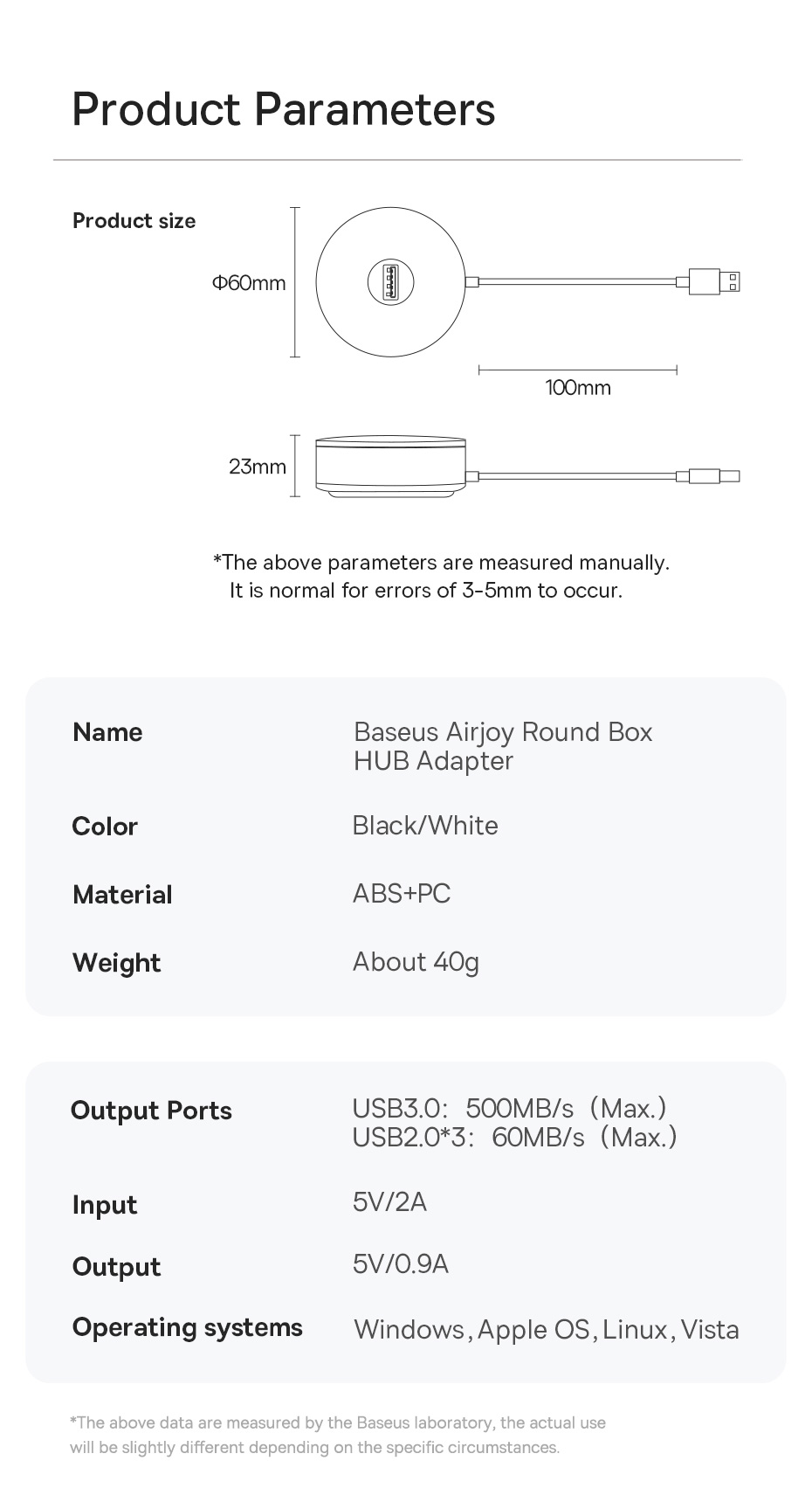 | Tên | Hub Mở Rộng Kết Nối Baseus Airjoy round box HUB adapter |