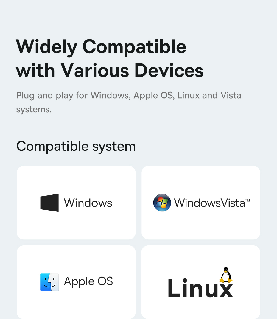 | Hê điều hành tương thích | Windows, Apple OS, Linux, Vista |