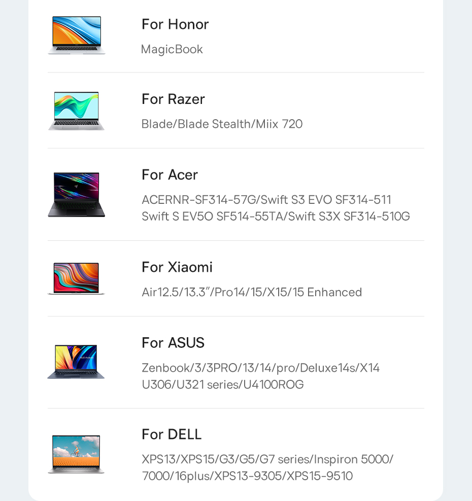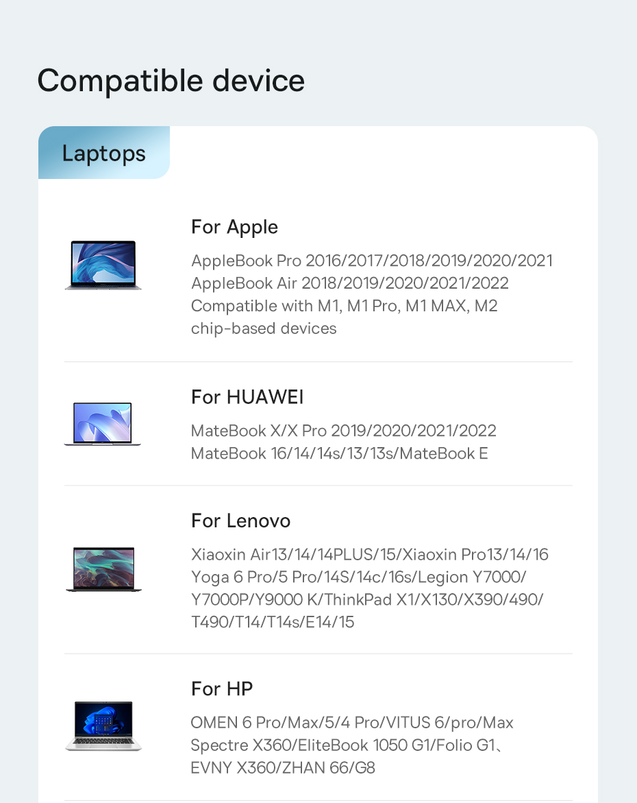 | Input | 5V-3A, 9V-3A, 15V-3A, 20V-5A |
