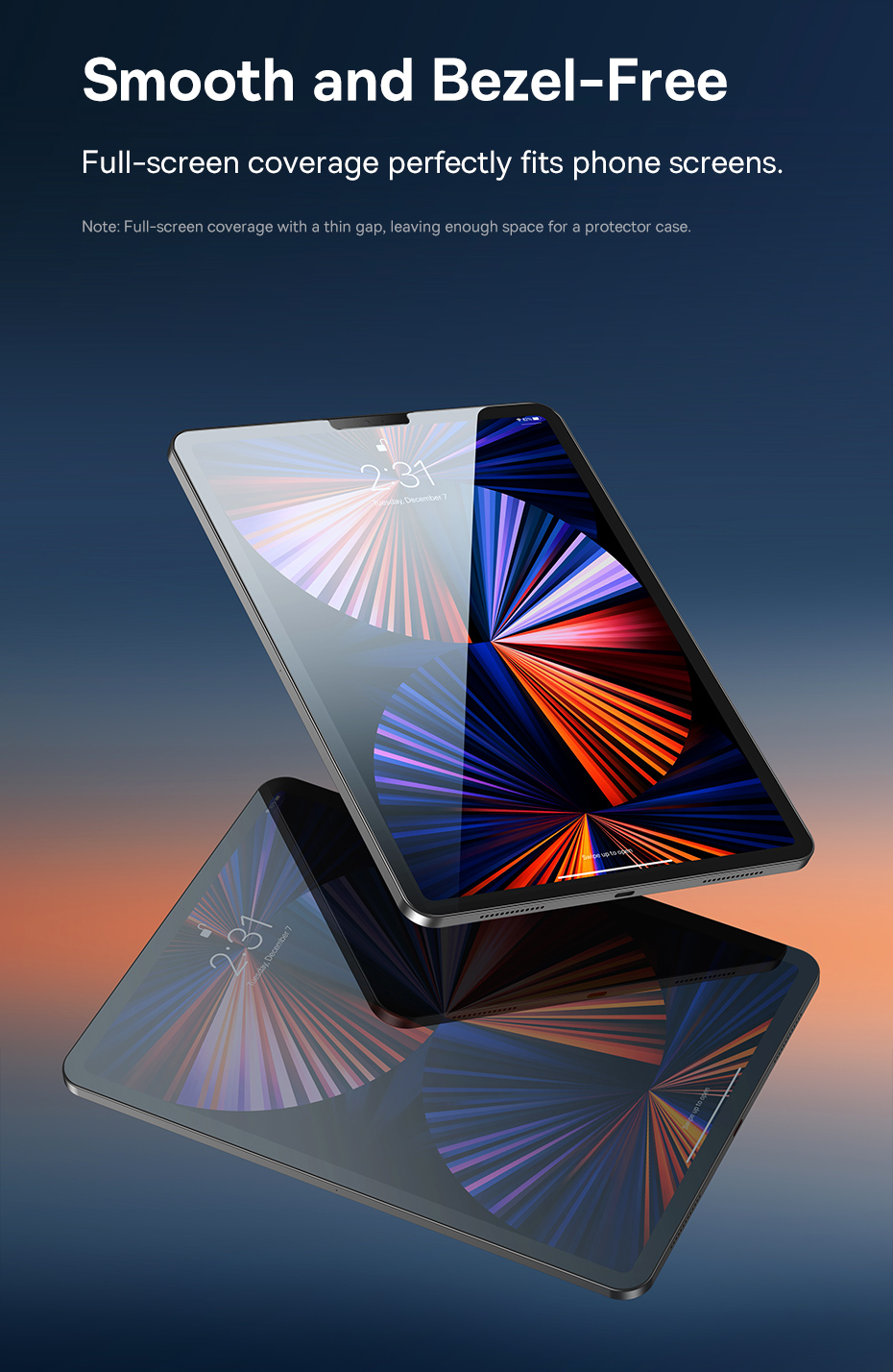 - Bảo vệ toàn diện màn hình iPad khỏi trầy xước, rơi vỡ và các tác nhân vật lý trong quá trình sử dụng.