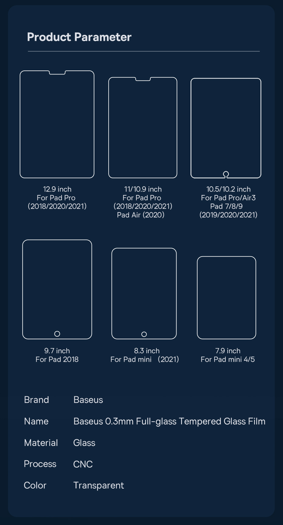 Kính Cường Lực Full Màn Hình Chống Trầy Siêu Nét Baseus 0.3mm Full-Glass Tempered Glass Film Cho IPad Pro / Air / Mini