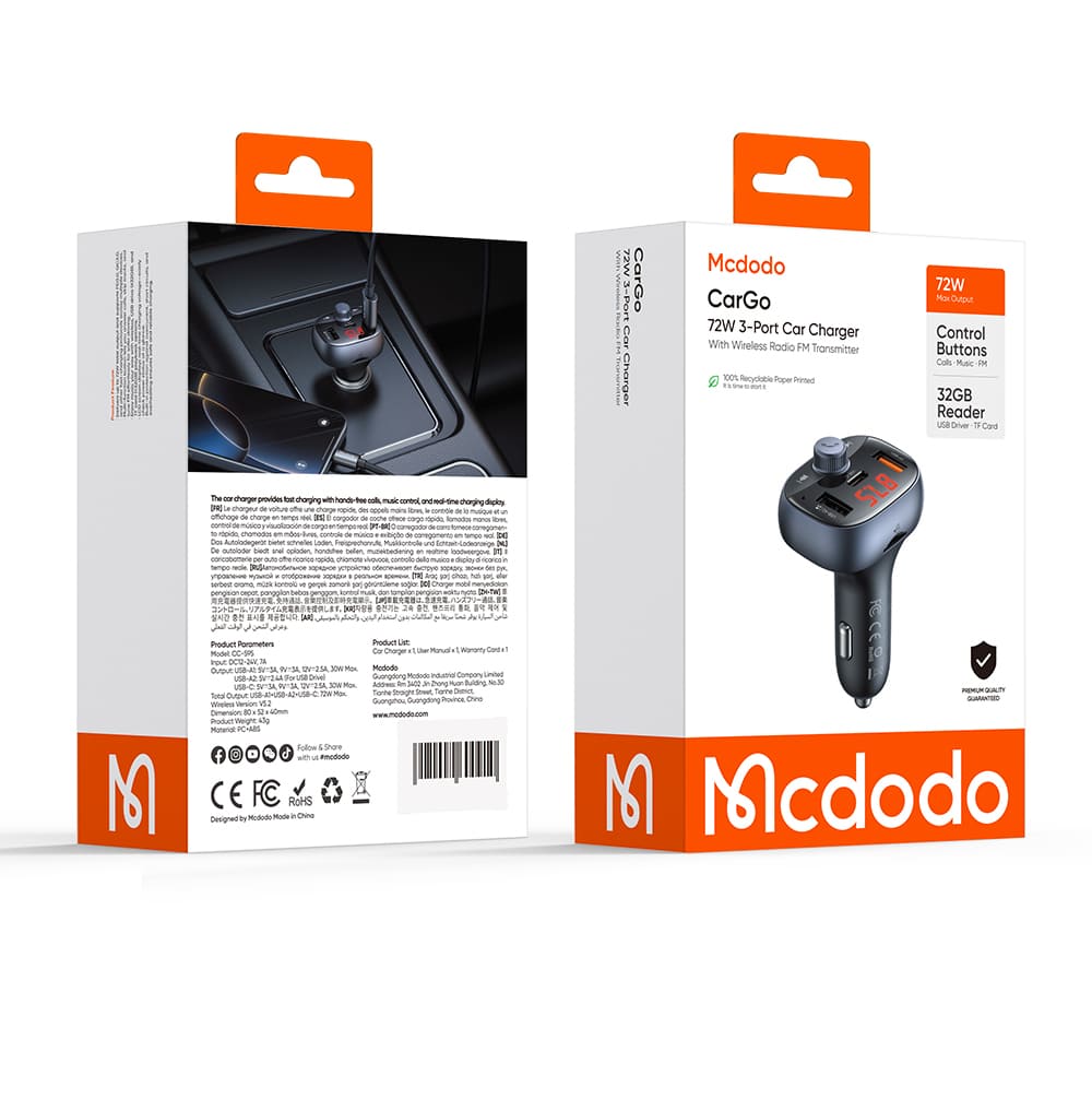 ✨ TẨU SẠC MCDODO CARGO 72W KIÊM BLUETOOTH FM ✨ NÂNG CẤP ÂM THANH & SẠC NHANH CHO XE HƠI!