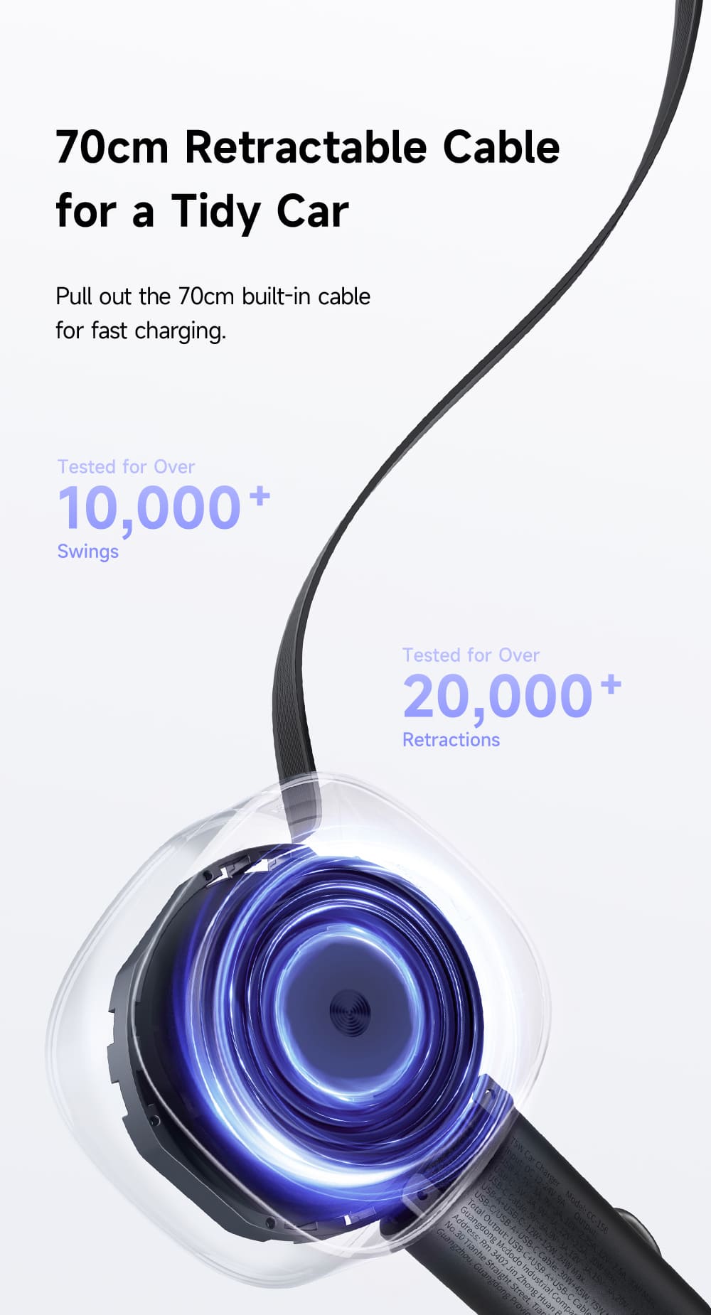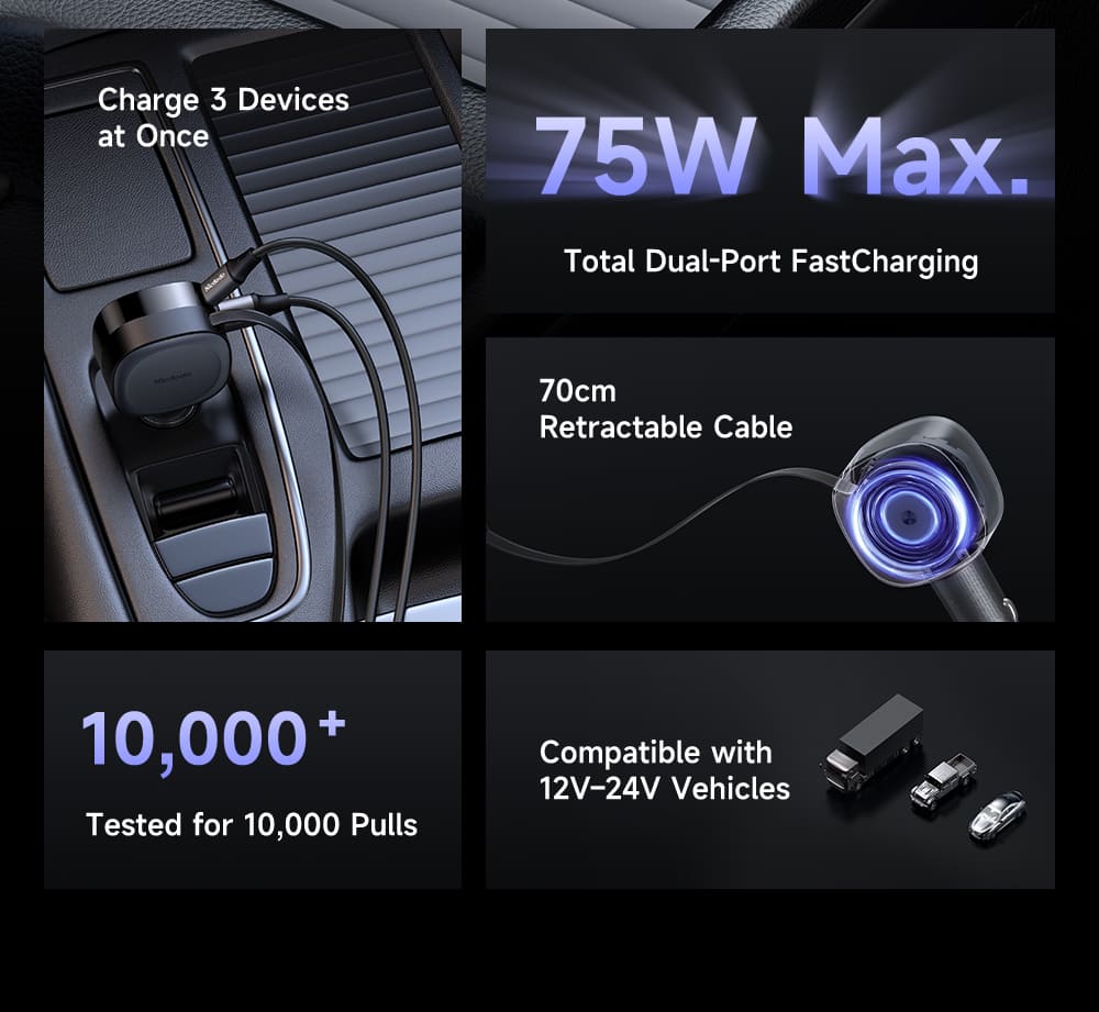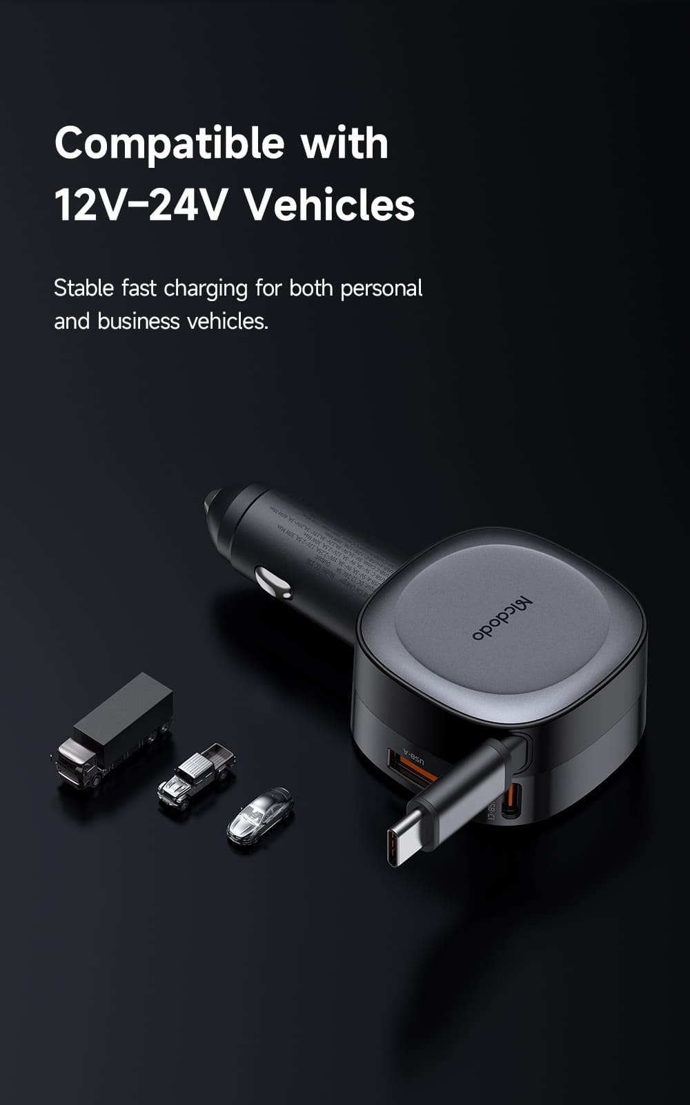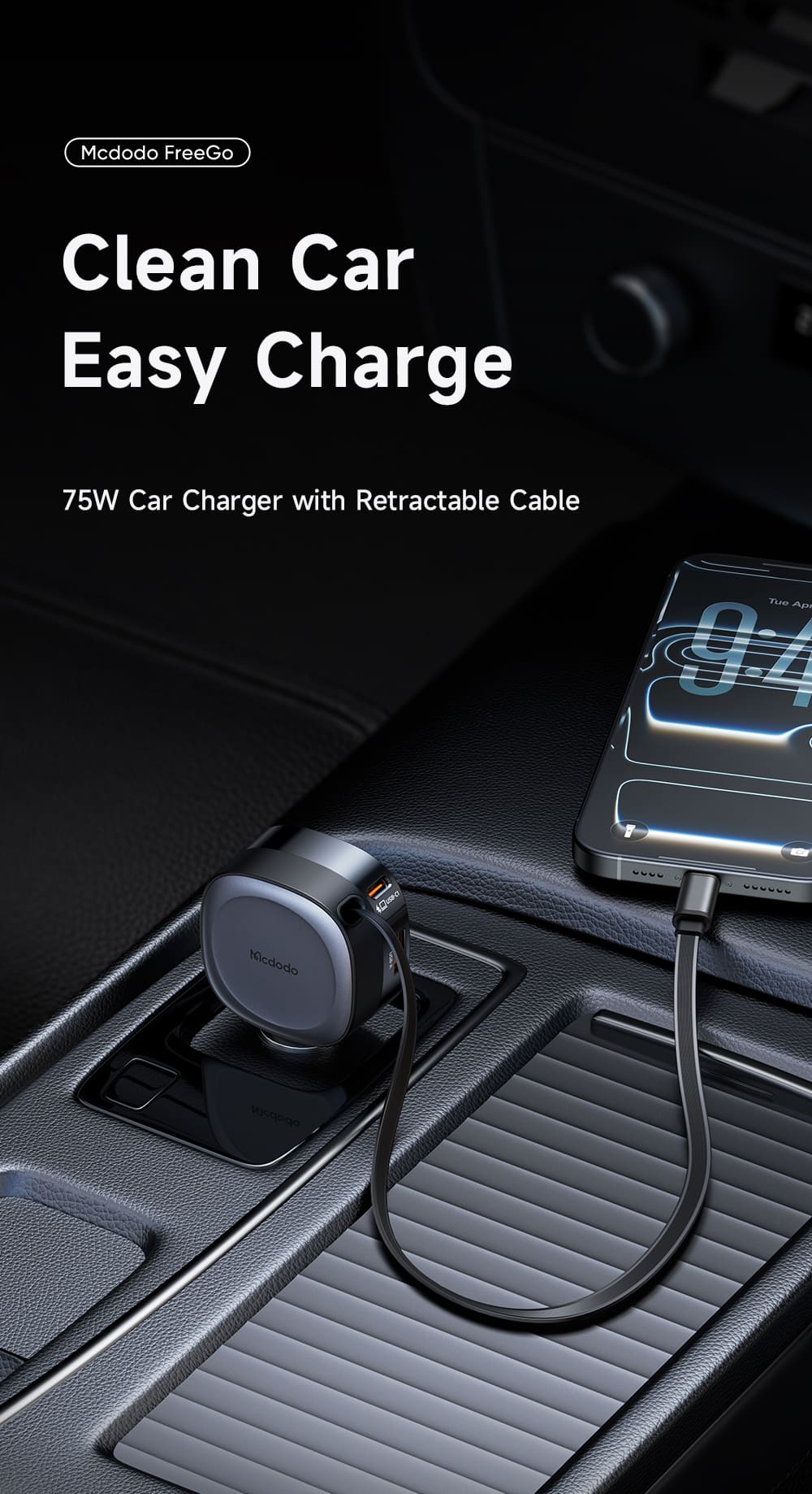 Mệt mỏi với dây sạc lộn xộn trong xe? 🚗⚡ Tẩu sạc Mcdodo FreeGo 75W là giải pháp tối ưu! Với dây Type-C tích hợp có thể tự động rút gọn và 2 cổng sạc thêm, bạn có thể sạc nhanh 3 thiết bị cùng lúc một cách ngăn nắp. Tổng công suất 75W mạnh mẽ, sạc được cả laptop, là người bạn đồng hành không thể thiếu trên mọi chuyến đi.