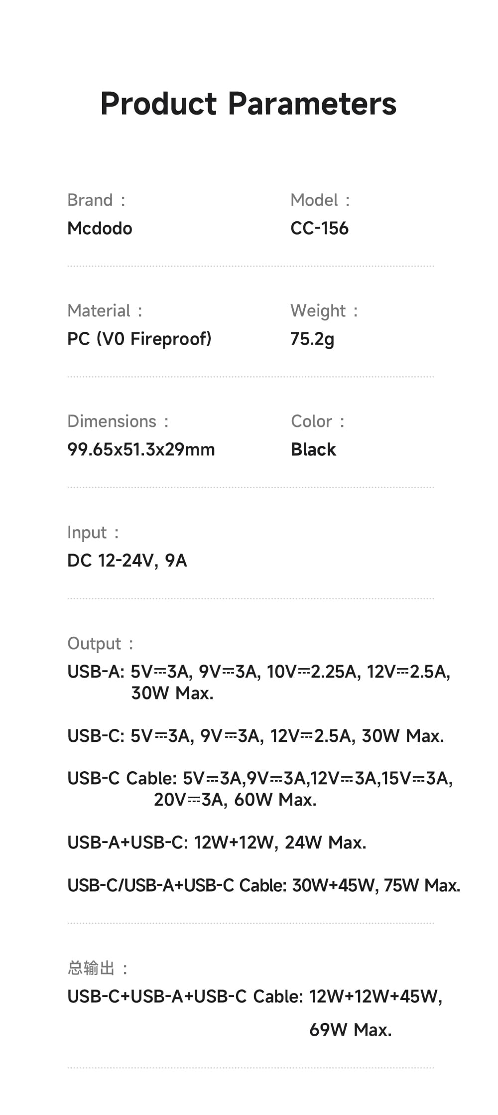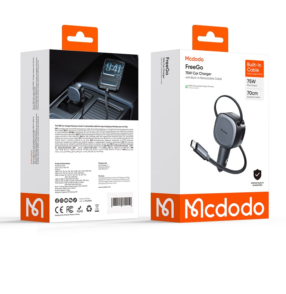 | Tên | Tẩu Sạc Mcdodo FreeGo 75W USB + Type-C | Kèm Dây Type-C Rút Gọn, Sạc Nhanh Laptop Điện Thoại |