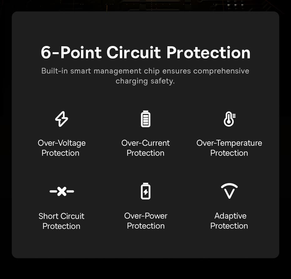 Bảo vệ an toàn: Chip thông minh với 6 lớp bảo vệ mạch.
