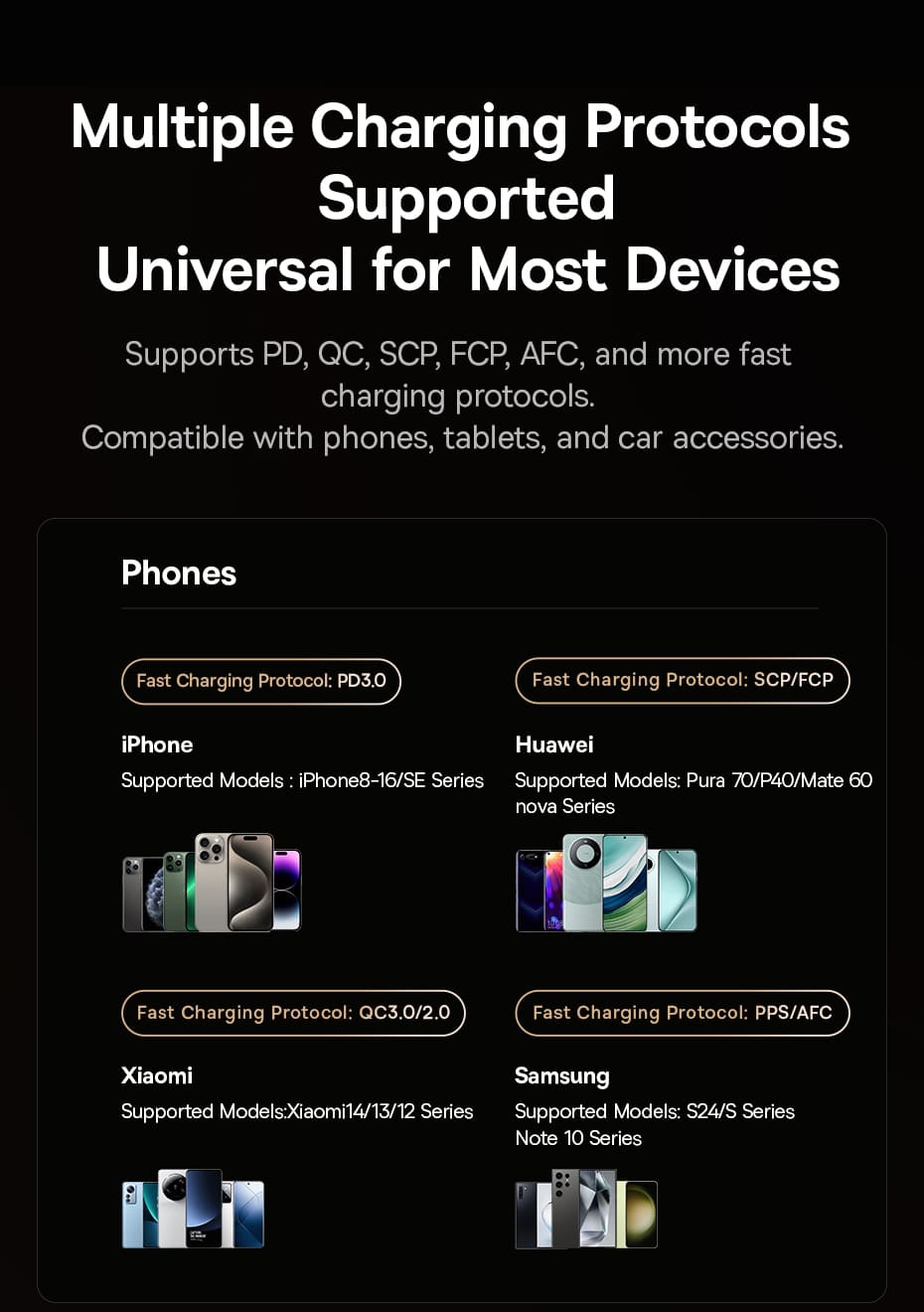 Tương thích: Hỗ trợ đa chuẩn sạc nhanh (PD, QC, SCP, FCP...).