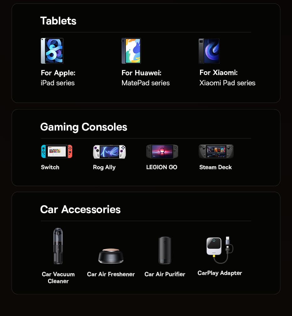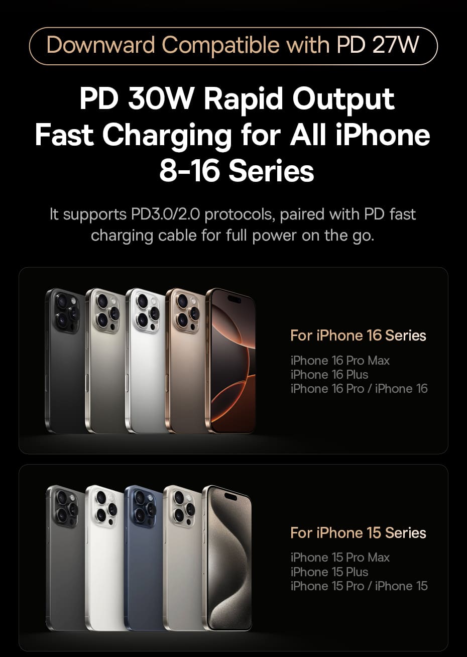 | Type-C Output | 5V-3A, 9V-3A, 12V-2.5A 30W |