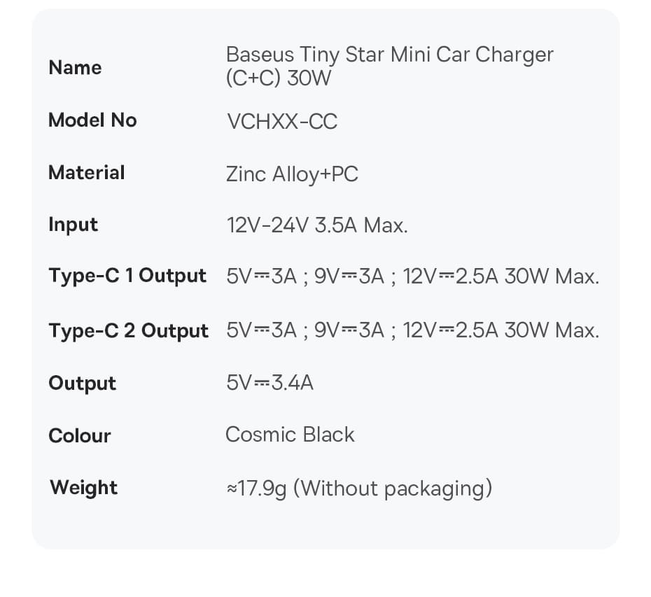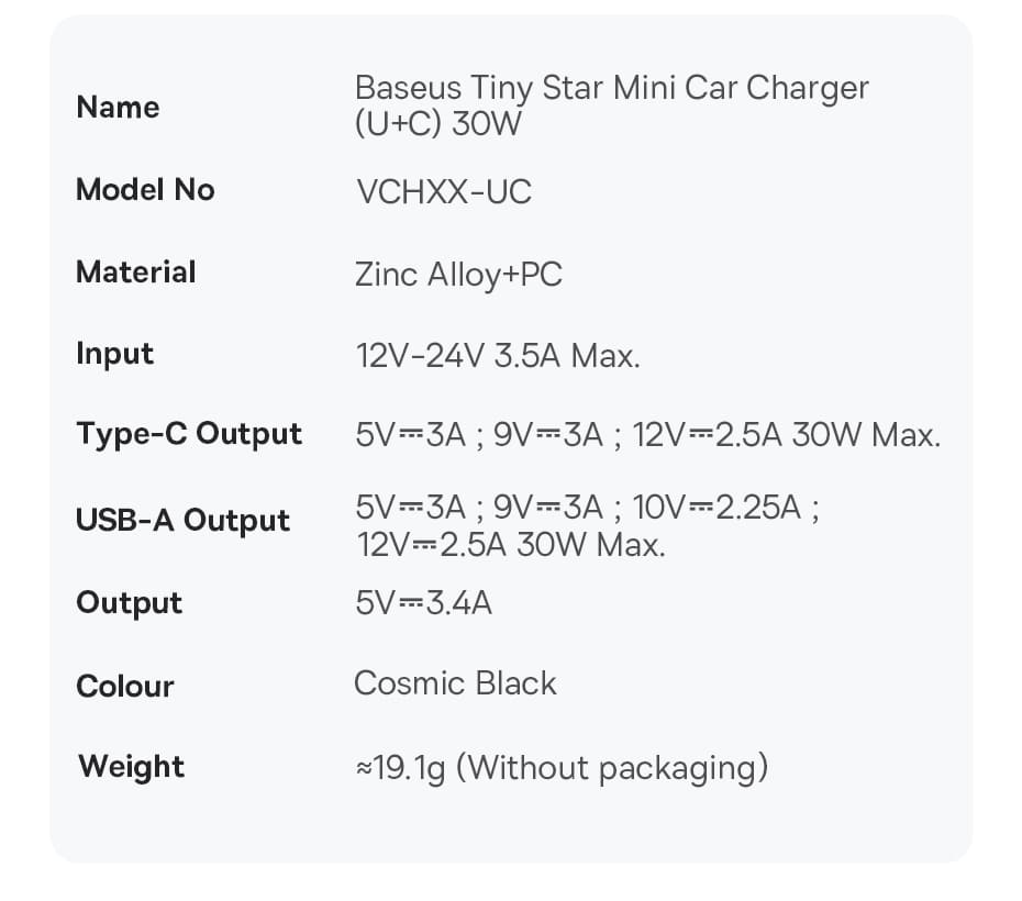 | Tên | Tẩu Sạc Nhanh Baseus Tiny Star Mini Car Chargera 30W |