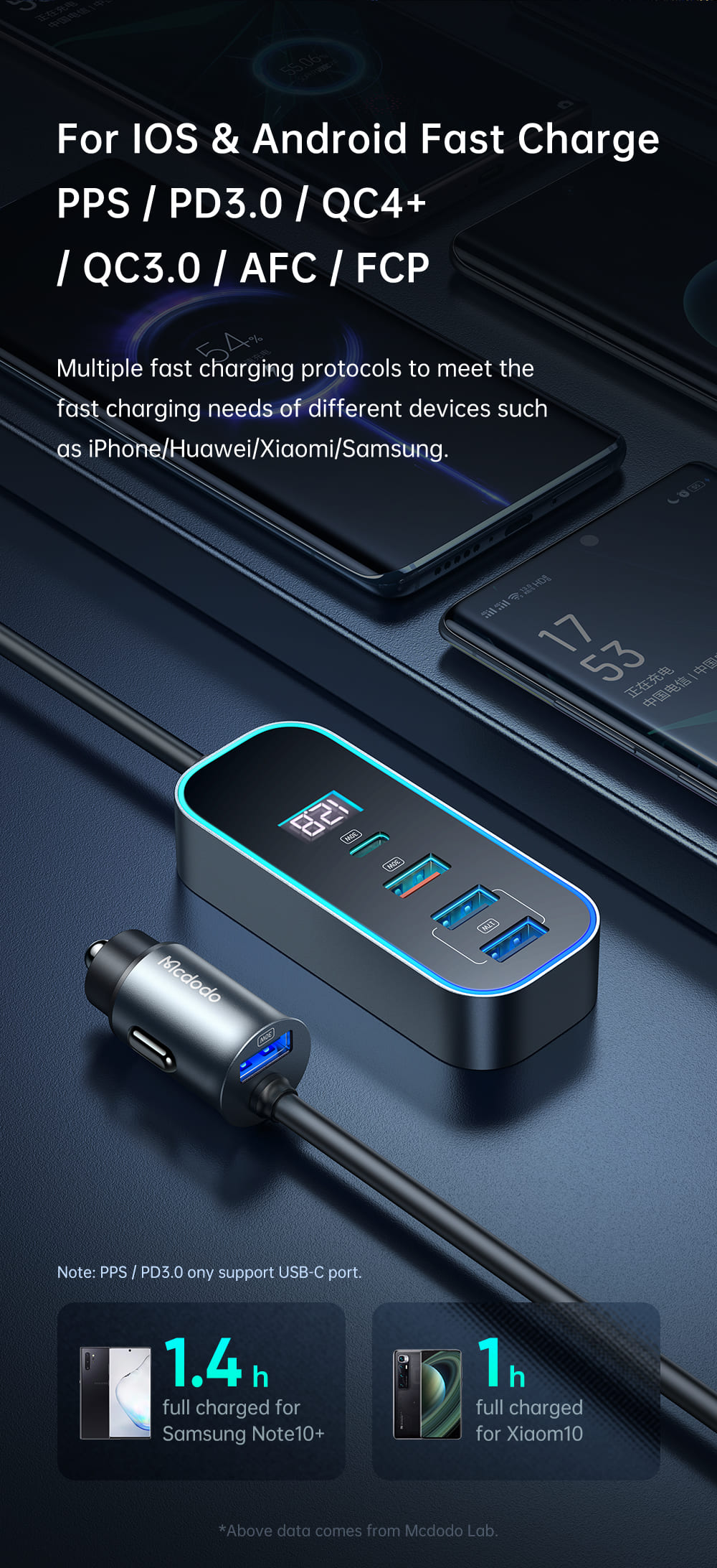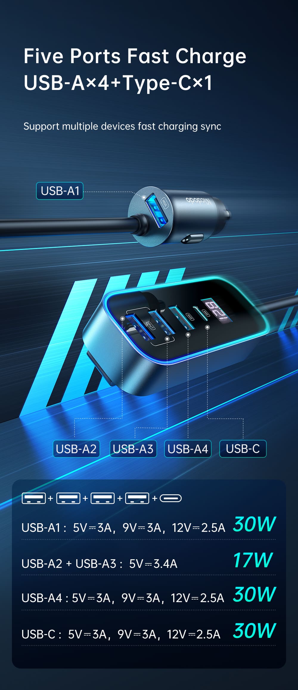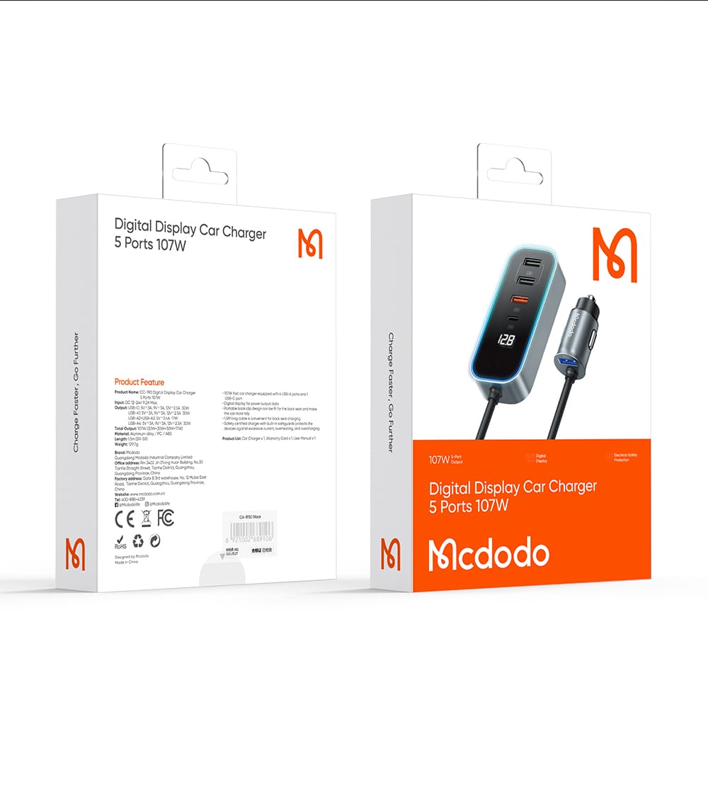 | Tên | Tẩu Sạc Nhanh Mcdodo 107W | Hub 5 Cổng Cho Ghế Sau, Có LED RGB |